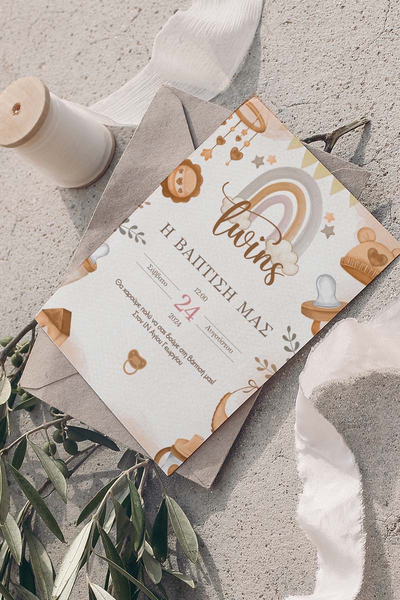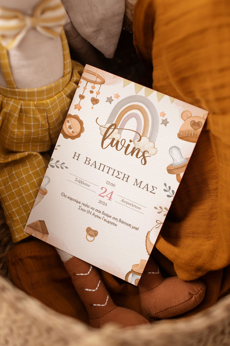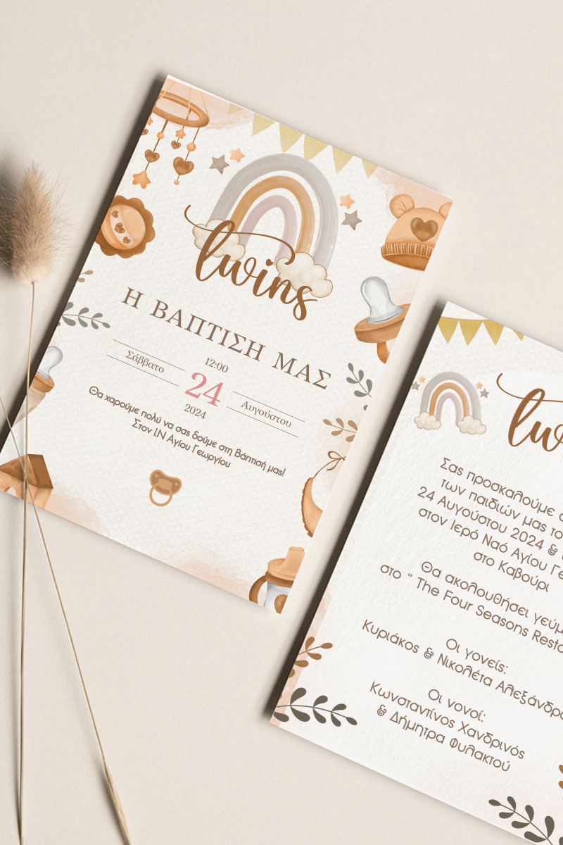Προσκλητήρια Βάπτισης με σχέδιο Παιδικό Δωμάτιο για Δίδυμα
