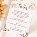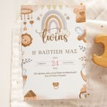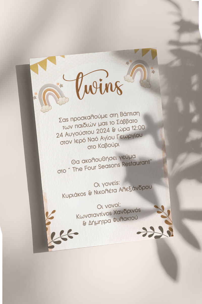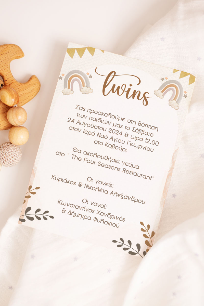Τα προσκλητήρια βάπτισης με σχέδιο Παιδικό Δωμάτιο για Δίδυμα αντανακλούν το πάθος μας για κομψότητα και τη δέσμευσή μας για απαράμιλλη ποιότητα.