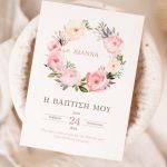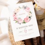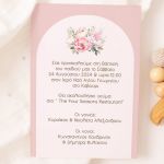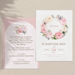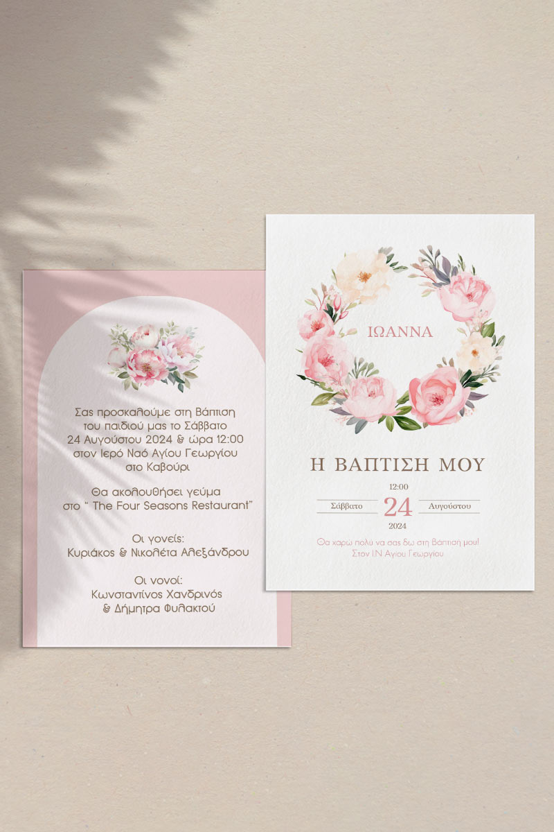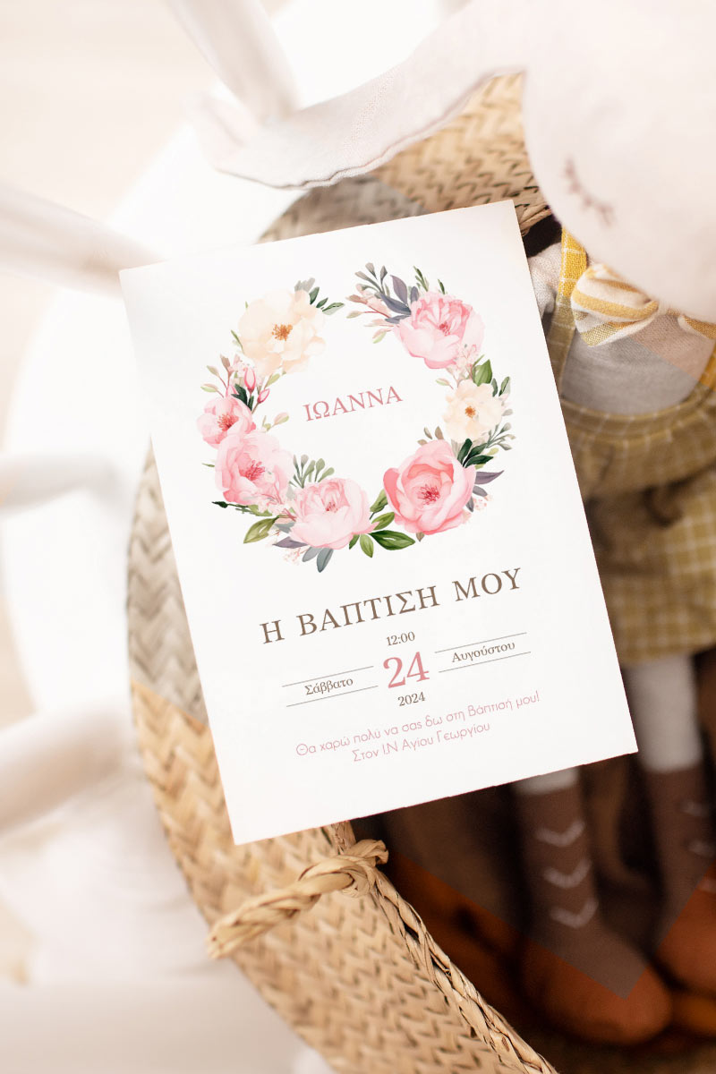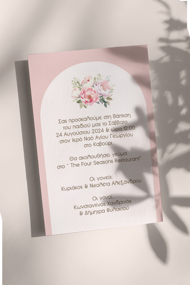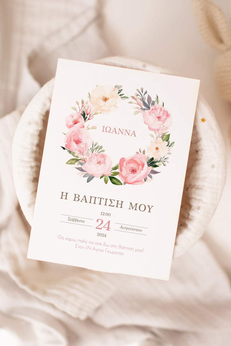 Προσκλητήρια Βάπτισης για κορίτσι με σχέδιο Ροζ Λουλούδια