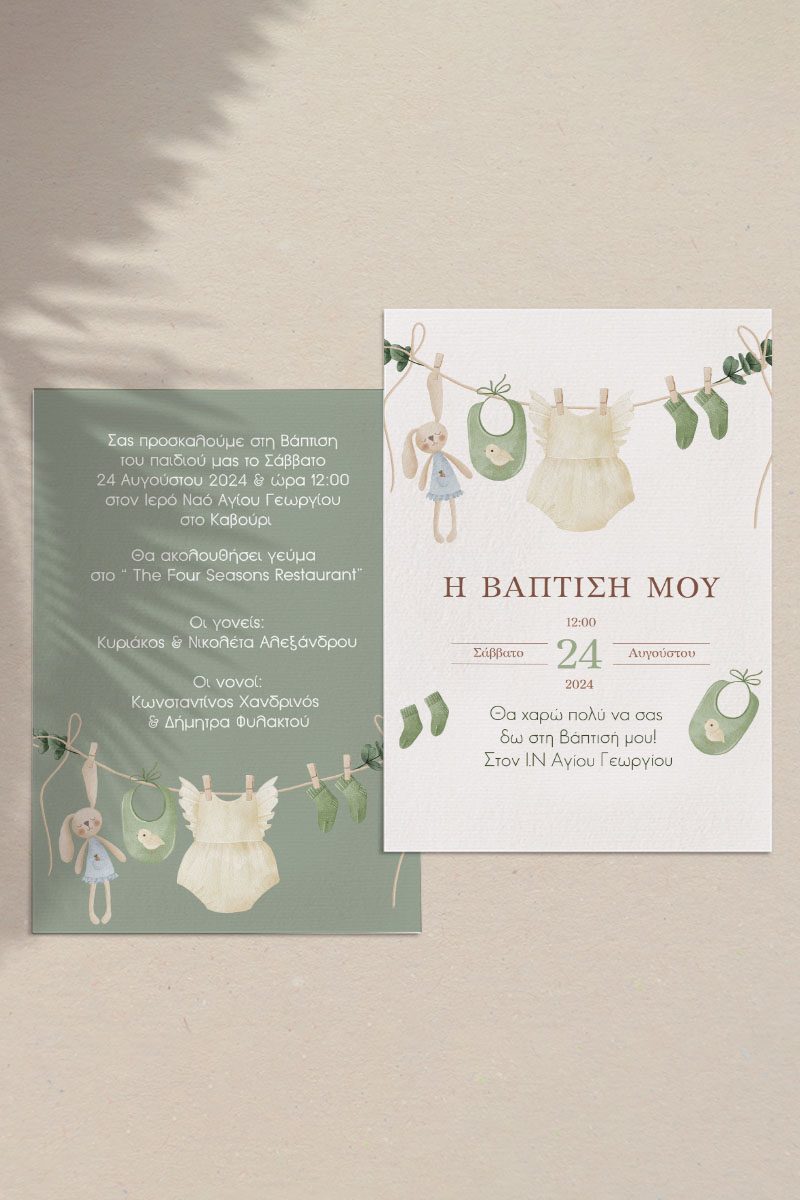Με εξαιρετικές τιμές, υψηλή αισθητική και κορυφαία τεχνολογία εκτύπωσης, τα προσκλητήριά μας εγγυώνται ότι η πρόσκληση της βάπτισής σας θα αφήσει ένα ανεξίτηλο σημάδι στην καρδιά κάθε καλεσμένου.