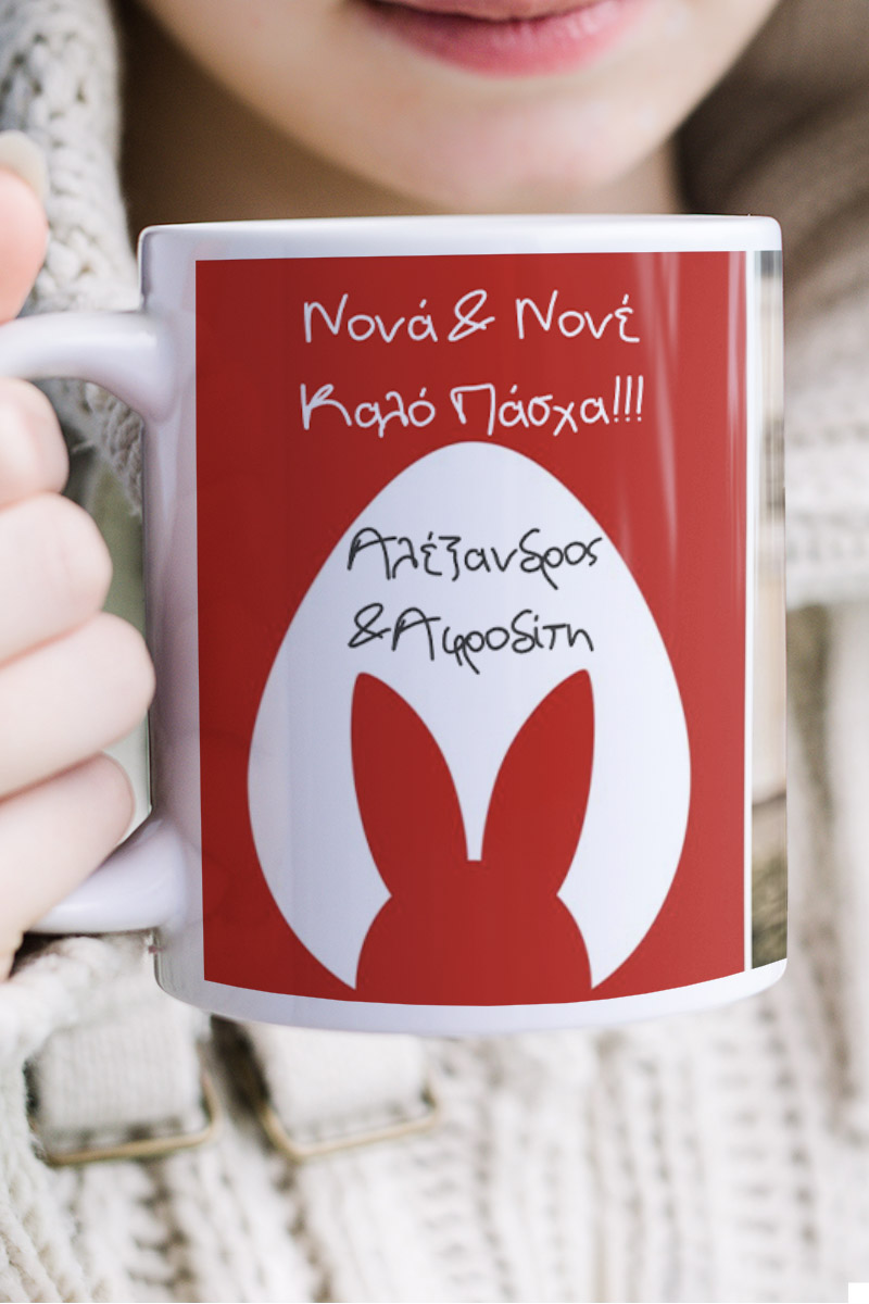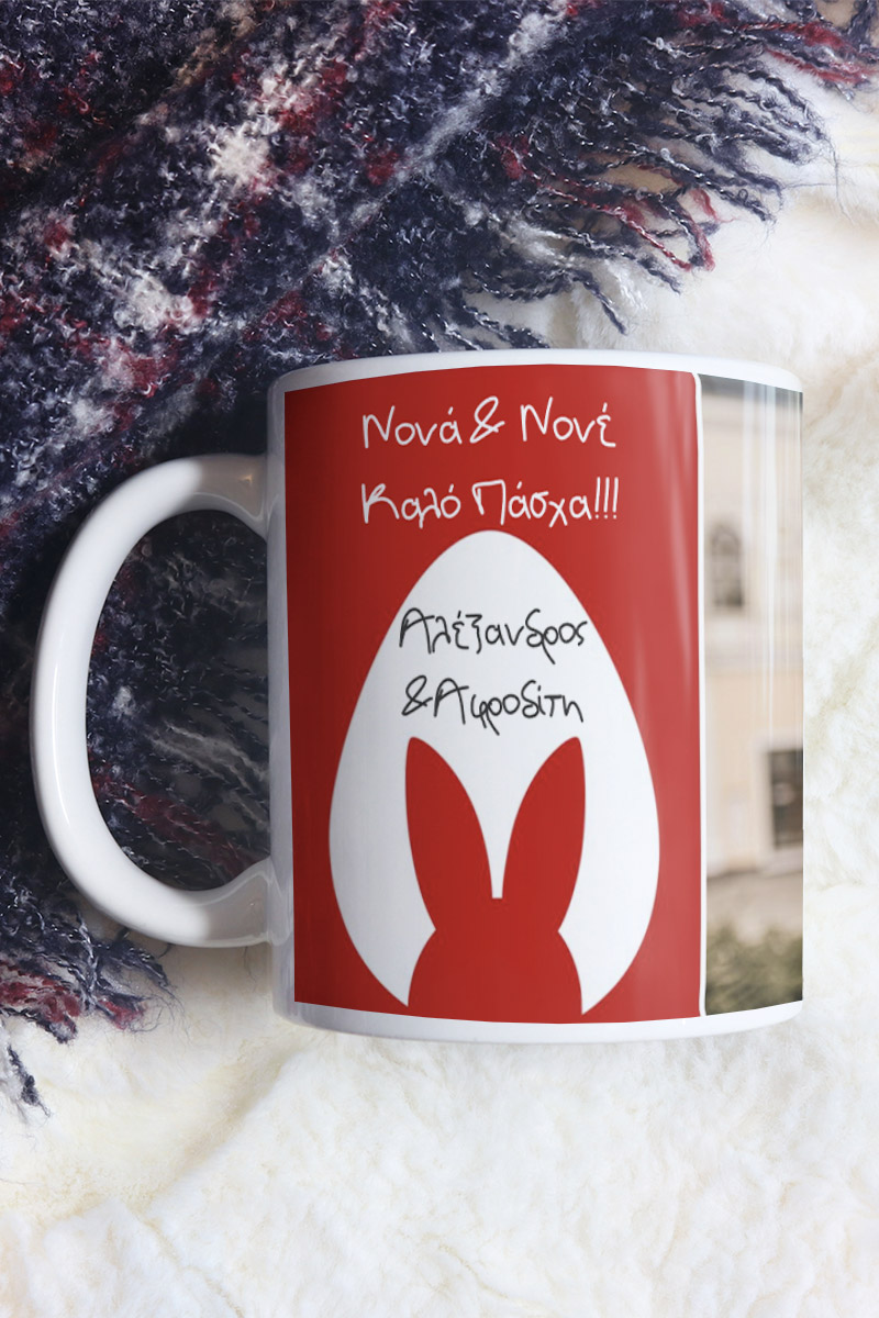 Εάν ψάχνετε ένα μοναδικό πασχαλινό δώρο, για την νονά , τον νονό , την θεία , τον θείο , την γιαγιά ή τον παππού  δημιουργήστε και χαρίστε του μία προσωποποιημένη κούπα & λάβετε πίσω τον ενθουσιασμό και την αγάπη του! Όποιος κι αν είναι ο αποδέκτης θα λατρέψει την ιδέα του ότι δημιουργήσατε κάτι μοναδικό, αποκλειστικά γι΄ αυτόν !