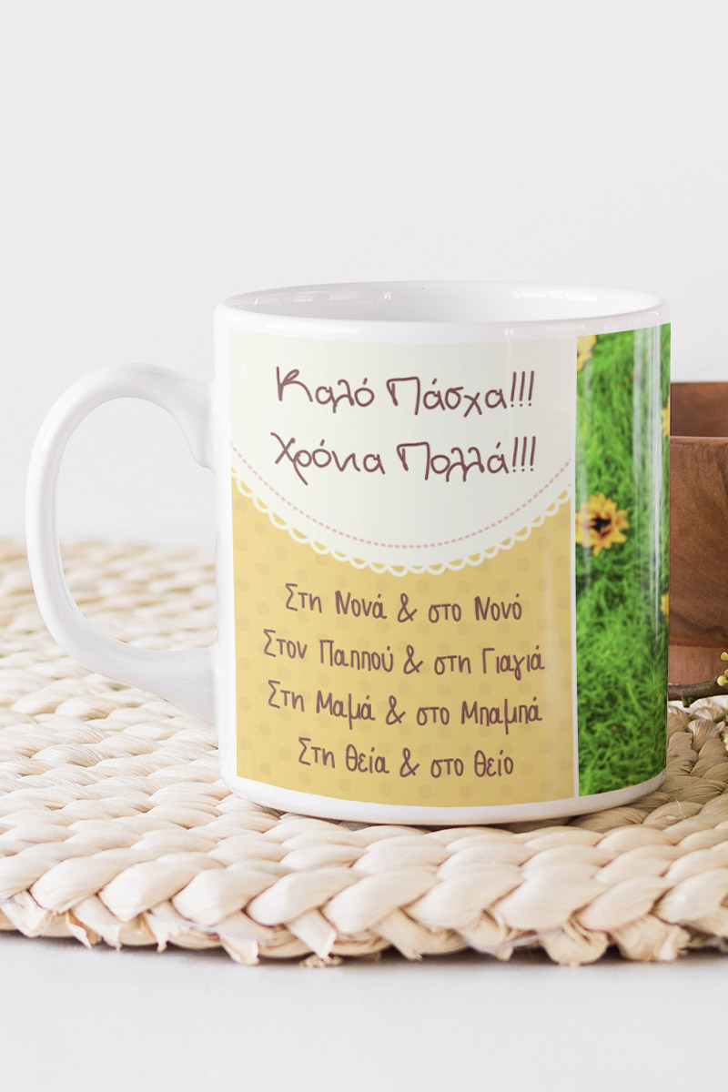 Ψάχνεις για ένα προσωποποιημένο δώρο για το Πάσχα ; Φτιάξε εύκολα, online σε λίγα λεπτά τη δική σου κούπα! Ανέβασε τις σου φωτογραφίες σου & πρόσθεσε κείμενα & αγαπημένες φράσεις. Σε λίγα λεπτά θα έχεις δημιουργήσει τη δική σου απλή ή μαγική κούπα!