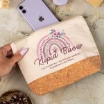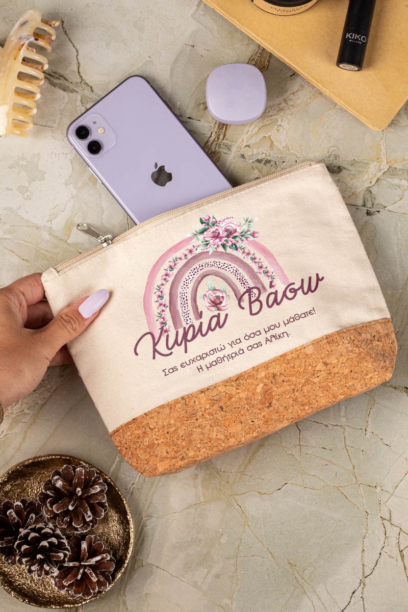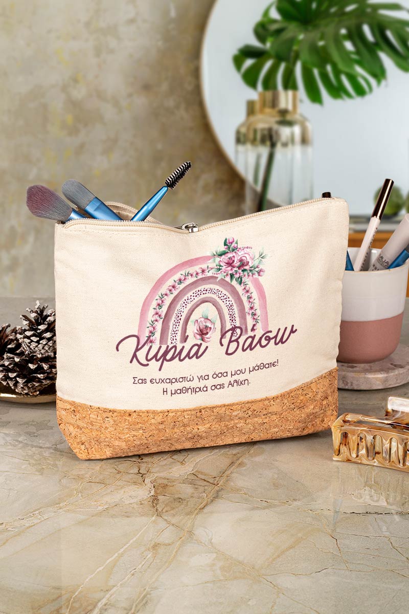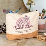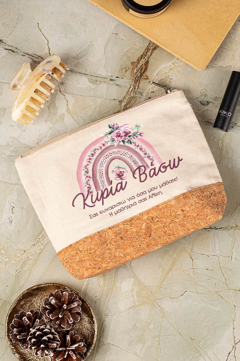 Προσωποποιημένο Εκρού Τσαντάκι & Νεσεσέρ Καλλυντικών με φελλό Λουλουδένιο Ουράνιο Τόξο