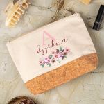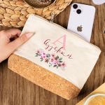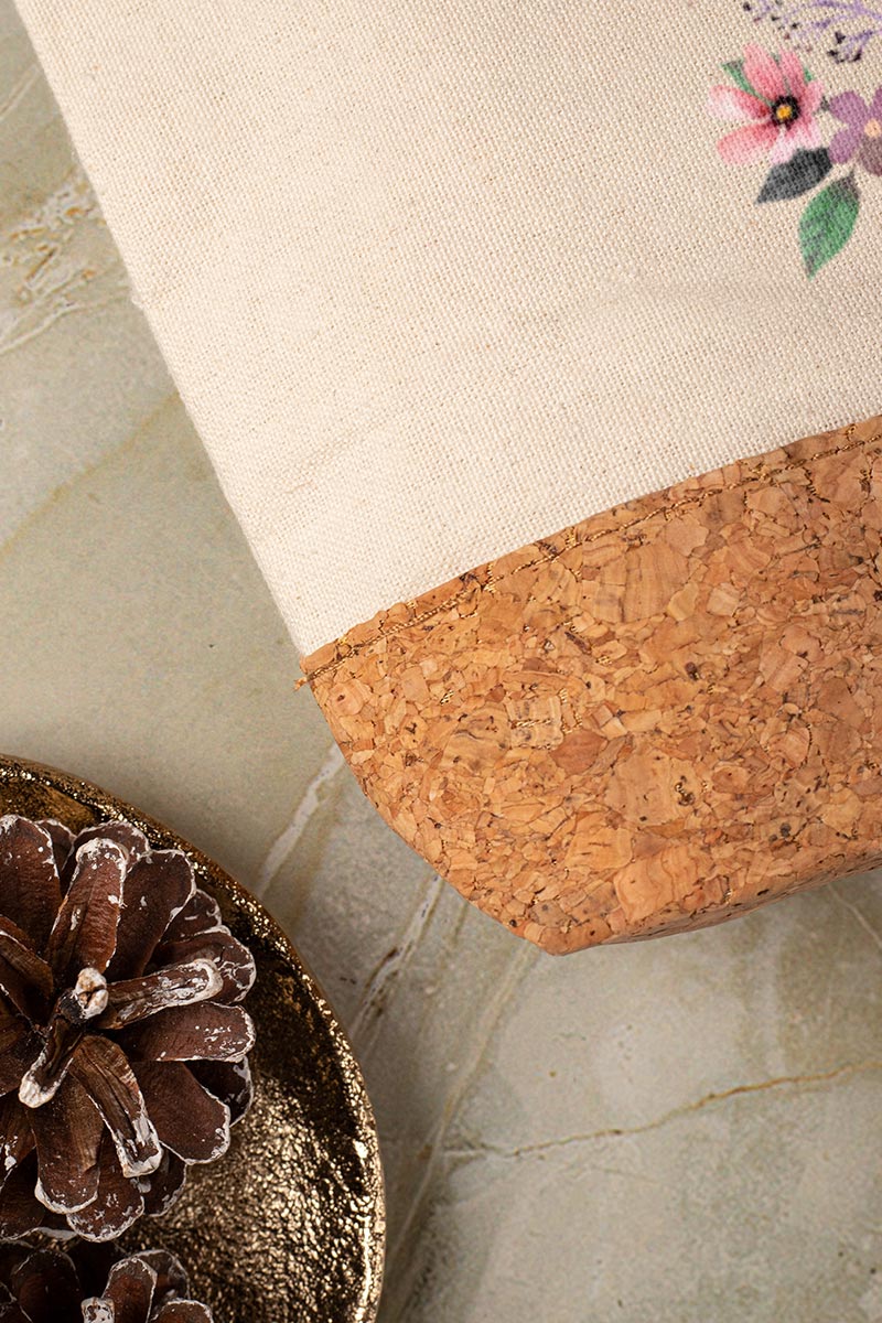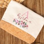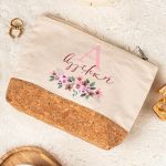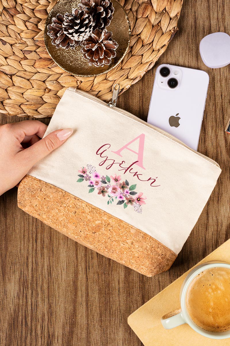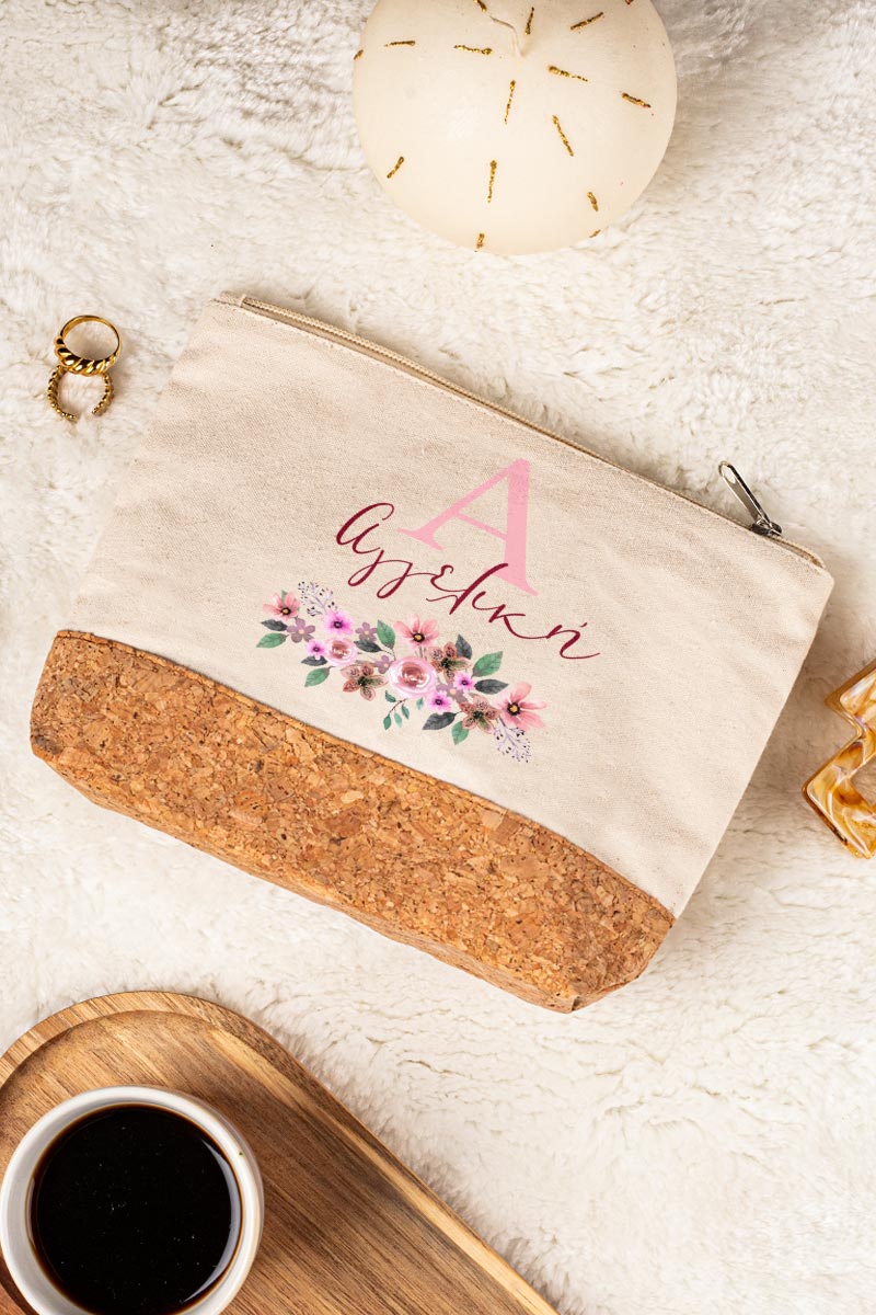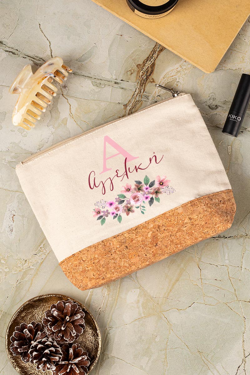 Προσωποποιημένο Εκρού Τσαντάκι & Νεσεσέρ Καλλυντικών με φελλό Μικρά Λουλουδάκια