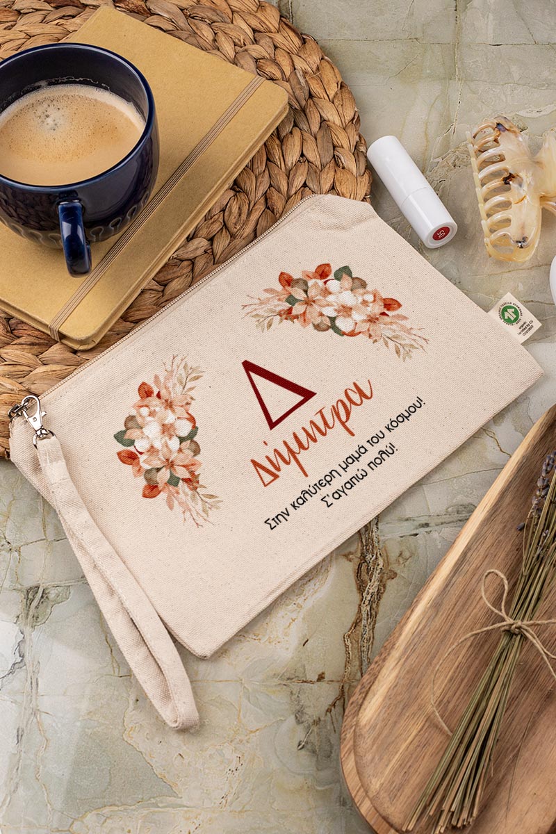 Προσωποποιημένο Εκρού Τσαντάκι & Νεσεσέρ Καλλυντικών Φθινοπωρινά Λουλούδια