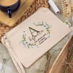 Προσωποποιημένο Εκρού Τσαντάκι & Νεσεσέρ Καλλυντικών Γαλάζια Λουλούδια