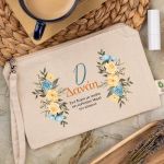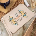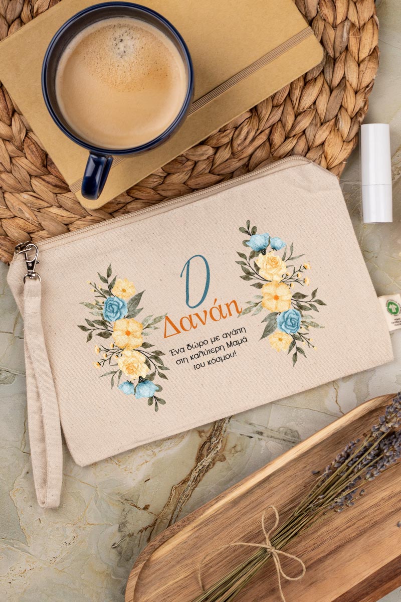 Προσωποποιημένο Εκρού Τσαντάκι & Νεσεσέρ Καλλυντικών Κίτρινα και Μπλε Λουλούδια