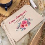 Προσωποποιημένο Εκρού Τσαντάκι & Νεσεσέρ Καλλυντικών Κόκκινα Λουλούδια