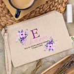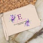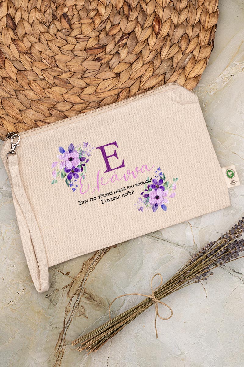 Προσωποποιημένο Εκρού Τσαντάκι & Νεσεσέρ Καλλυντικών Μωβ Λουλούδια