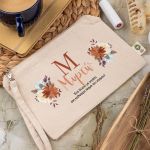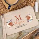 Προσωποποιημένο Εκρού Τσαντάκι & Νεσεσέρ Καλλυντικών Πολύχρωμα Λουλούδια
