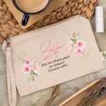 Προσωποποιημένο Εκρού Τσαντάκι & Νεσεσέρ Καλλυντικών Ροζ Άνθη