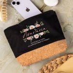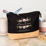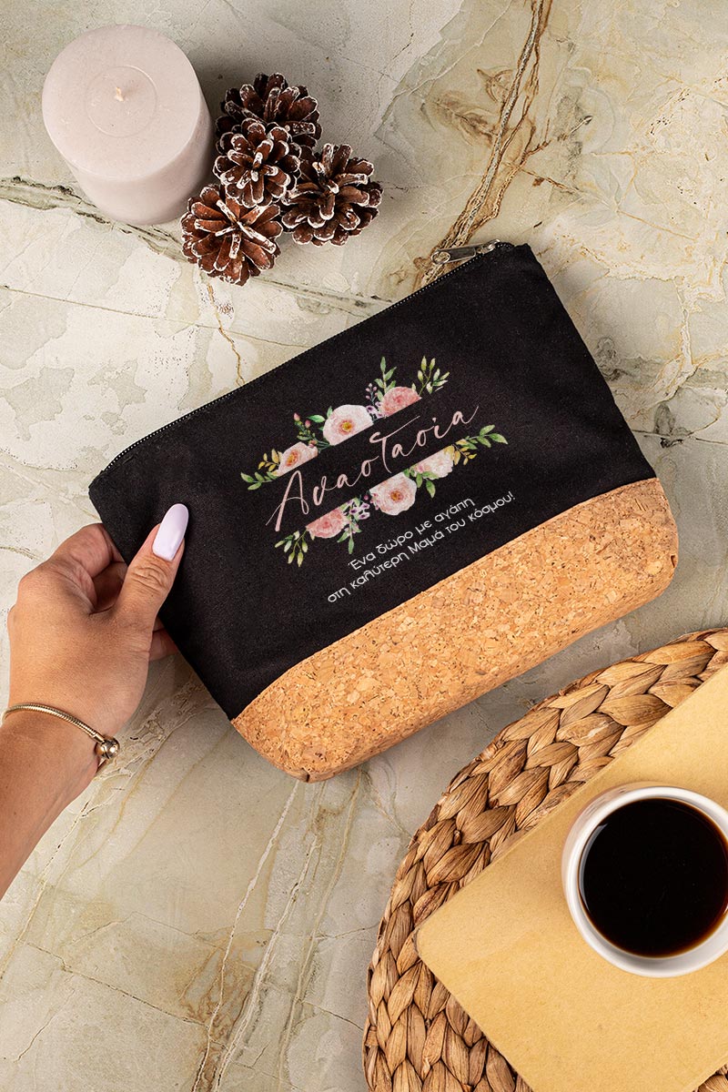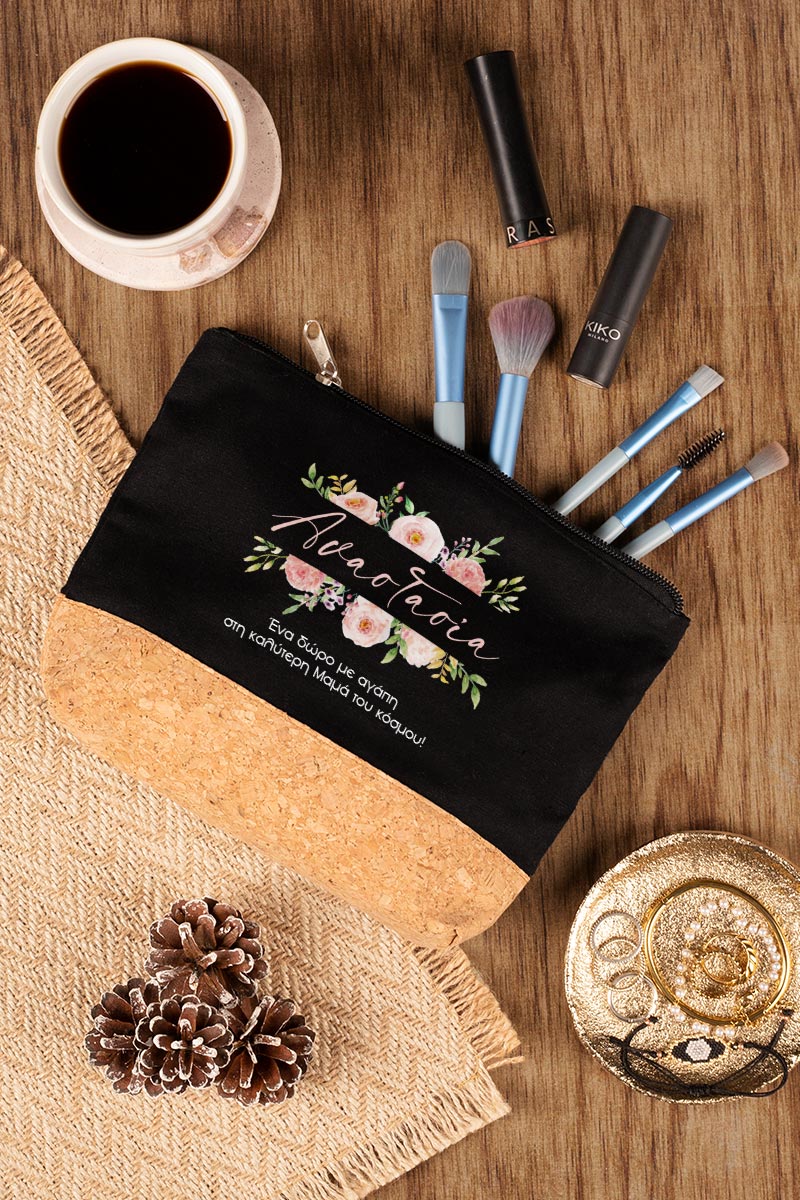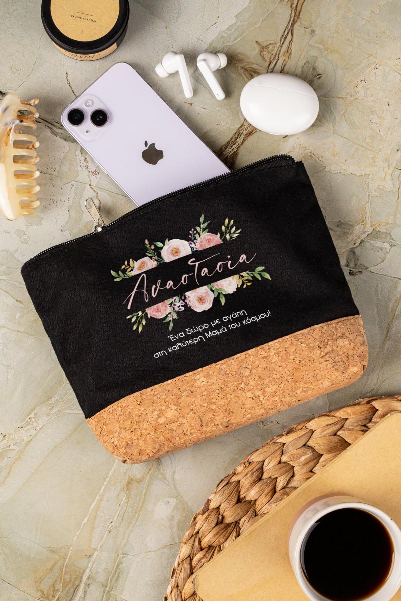 Προσωποποιημένο Μαύρο Τσαντάκι & Νεσεσέρ Καλλυντικών με φελλό Καλοκαιρινά Άνθη