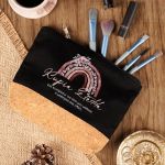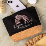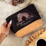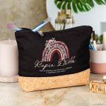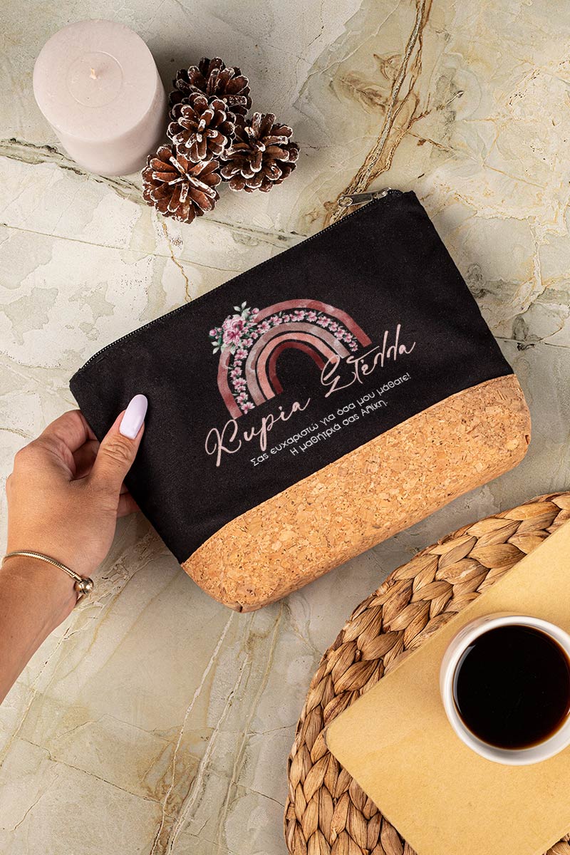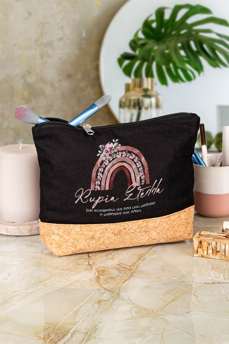 Προσωποποιημένο Μαύρο Τσαντάκι & Νεσεσέρ Καλλυντικών με φελλό Ουράνιο Τόξο Τριαντάφυλλα