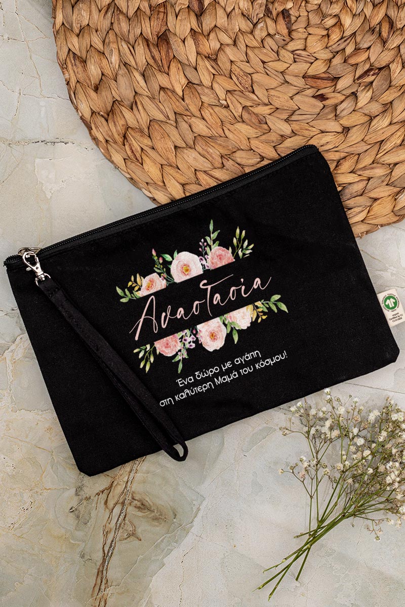 Προσωποποιημένο Μαύρο Τσαντάκι & Νεσεσέρ Καλλυντικών Καλοκαιρινά Άνθη