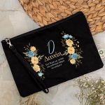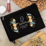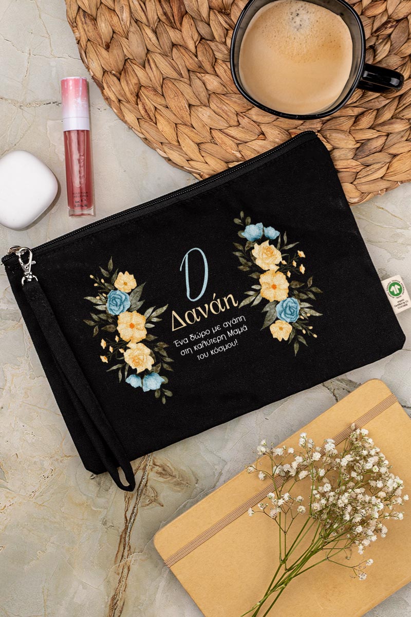 Προσωποποιημένο Μαύρο Τσαντάκι & Νεσεσέρ Καλλυντικών Κίτρινα και Μπλε Λουλούδια
