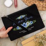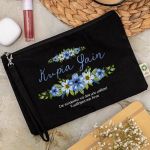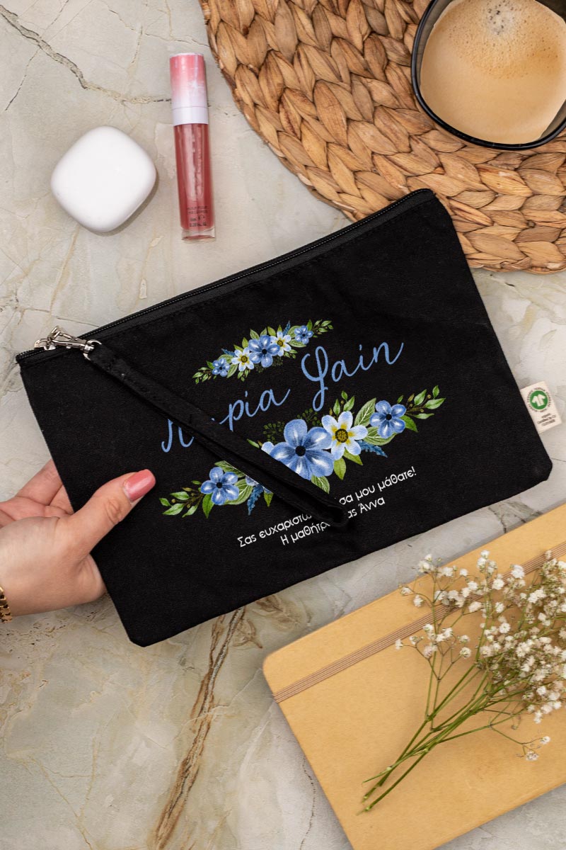 Προσωποποιημένο Μαύρο Τσαντάκι & Νεσεσέρ Καλλυντικών Μπλε Ανθισμένα Λουλούδια