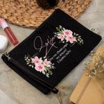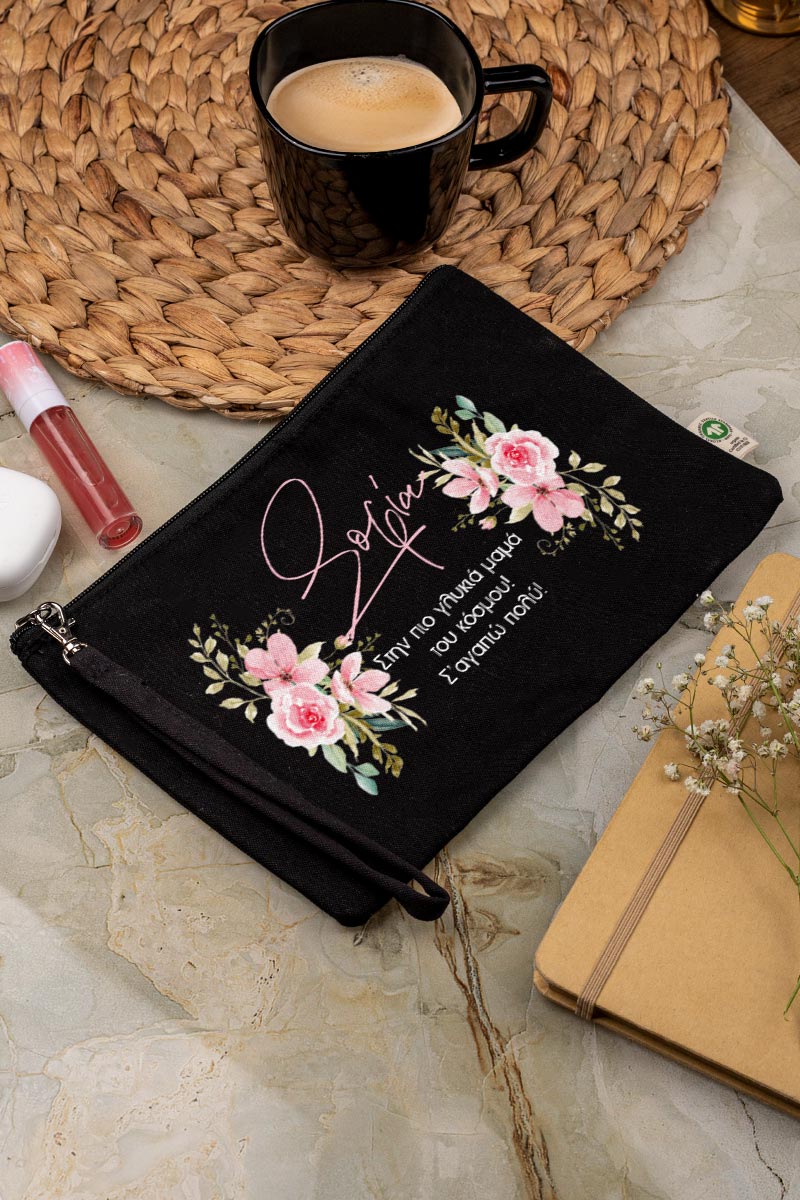 Προσωποποιημένο Μαύρο Τσαντάκι & Νεσεσέρ Καλλυντικών Ροζ Άνθη