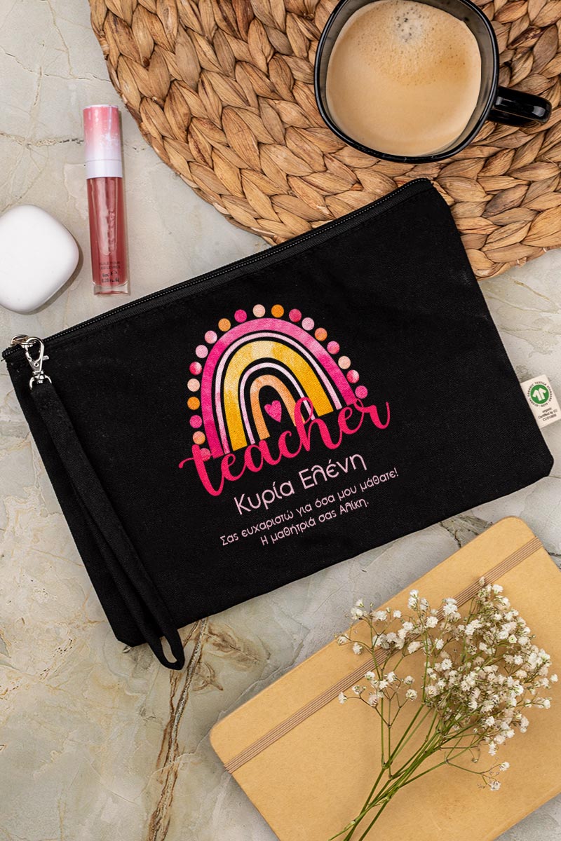 Προσωποποιημένο Μαύρο Τσαντάκι & Νεσεσέρ Καλλυντικών Ροζ & Κίτρινο Ουράνιο Τόξο