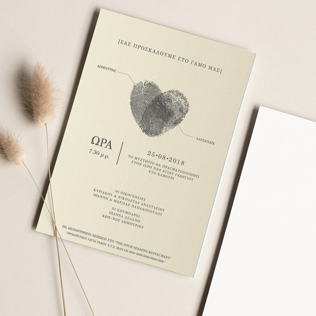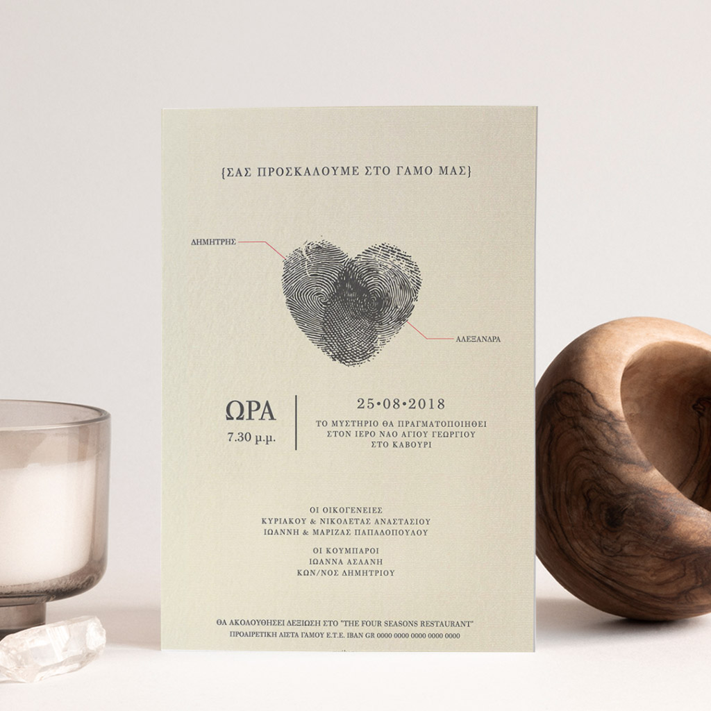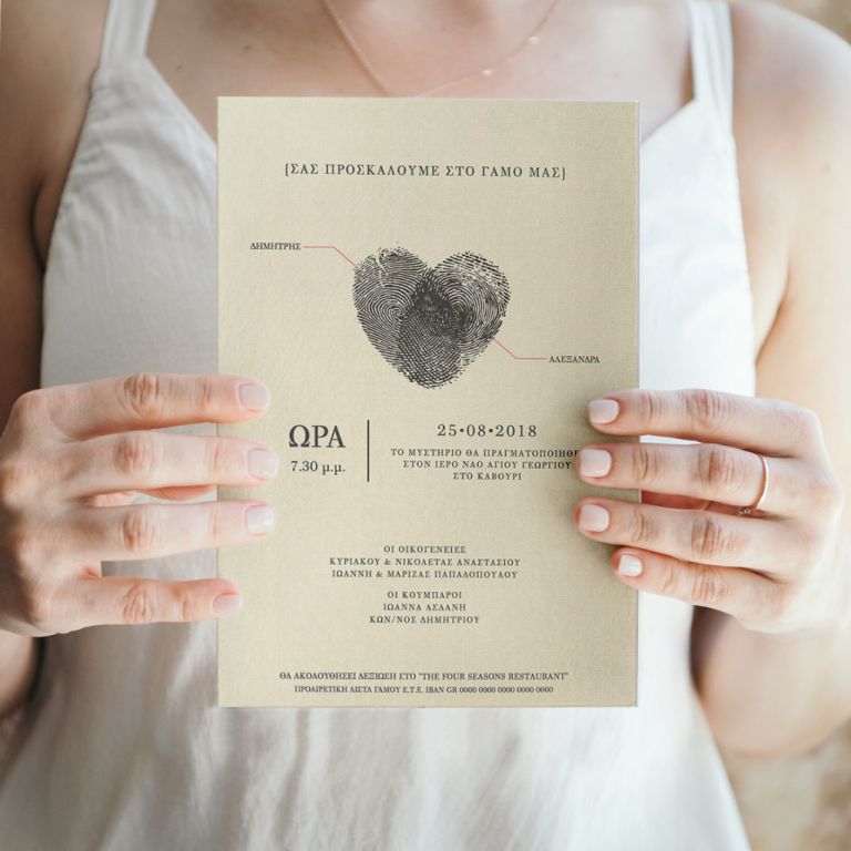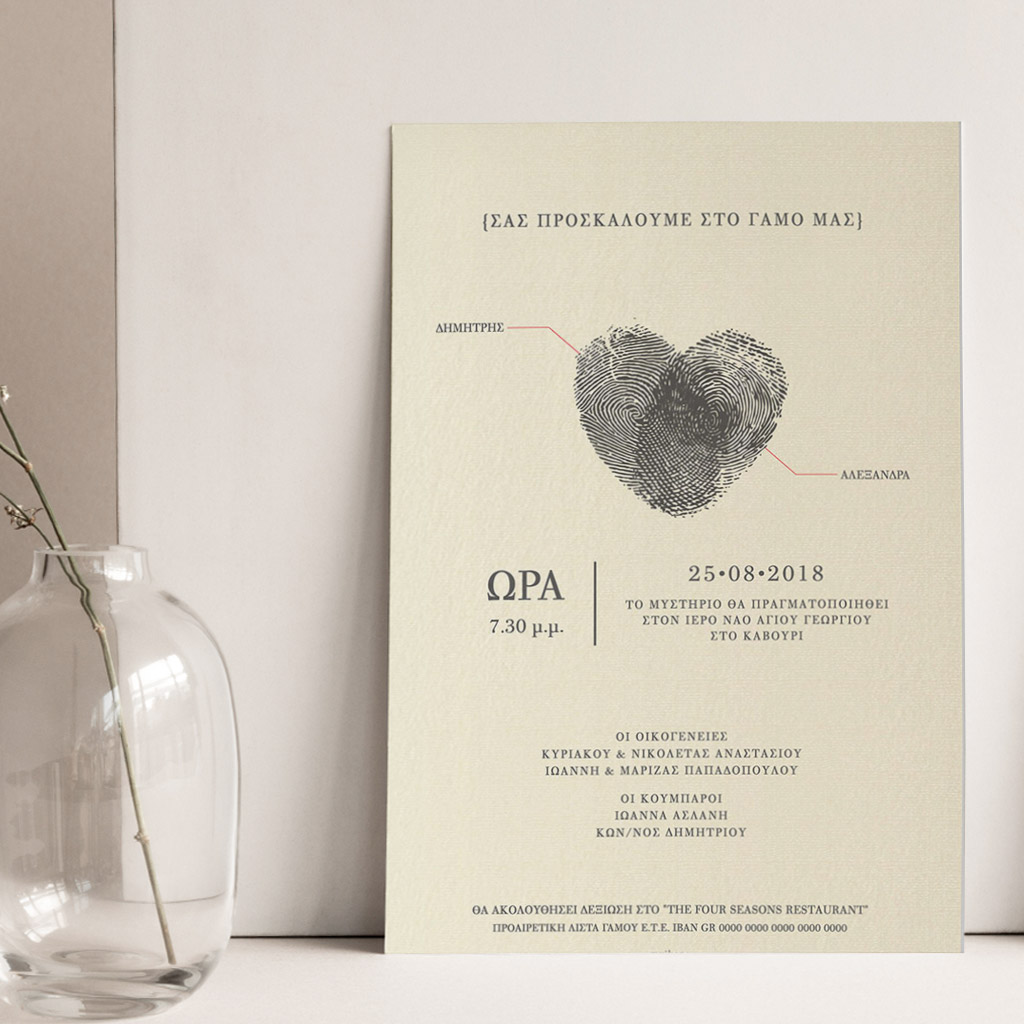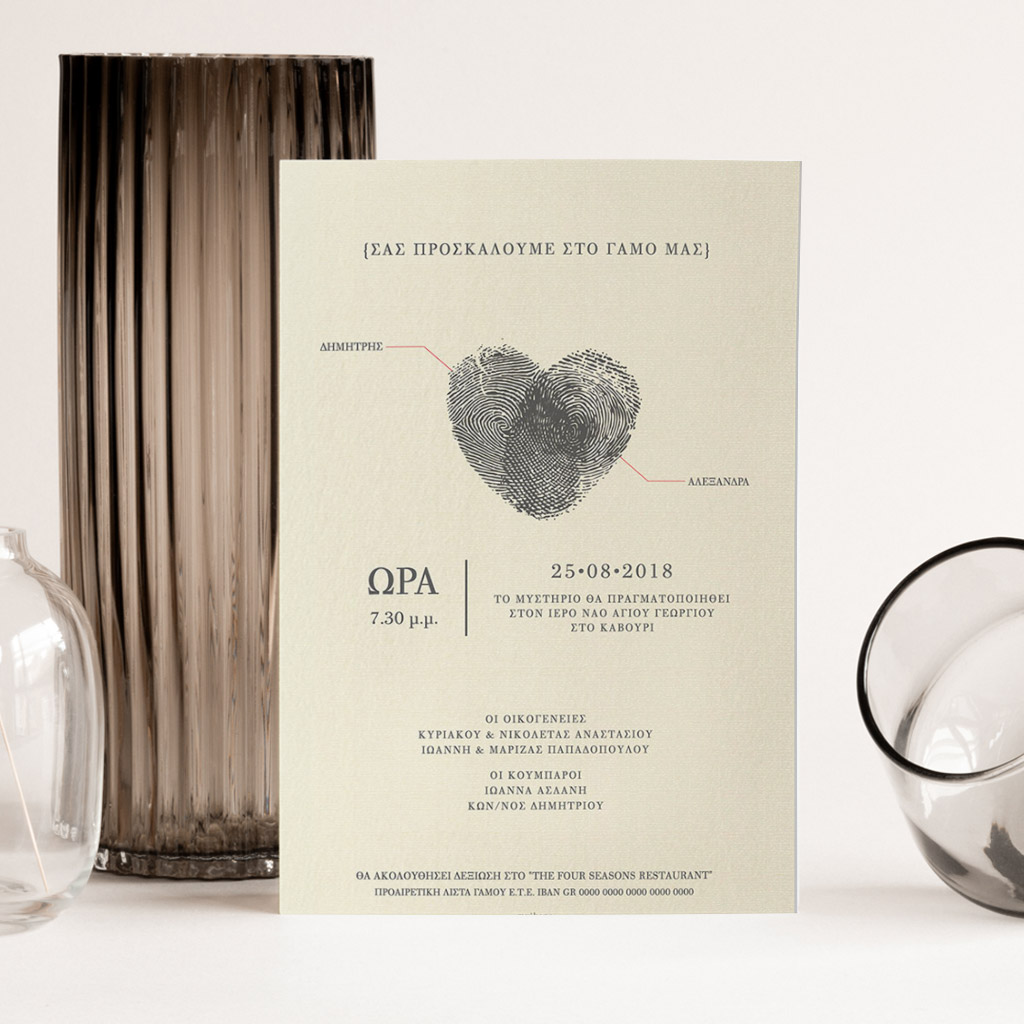 Αποκτήστε τα προσκλητήρια γάμου με σχέδιο Minimal Elegance. Οι πελάτες μας τα ξεχωρίζουν για το υψηλής ποιότητας ιταλικό χαρτί και την εκτύπωση υψηλής ευκρίνειας Myikona High Definition. Διαθέσιμα σε διαφορετικές διαστάσεις.
