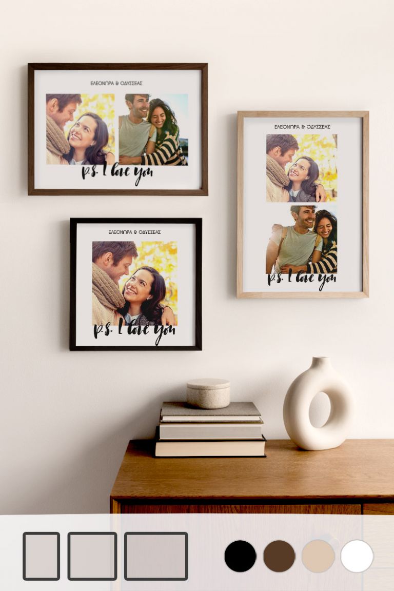 Κάνουμε πιο εύκολο από ποτέ τον τρόπο με τον οποίο μπορείτε να δημιουργήσετε online τα δικά σας έργα τέχνης. Προσθέστε στις κορνίζες σας μονογράμματα, κείμενα, λεζάντες και πολλά άλλα. Σε λίγα λεπτά, μπορείτε να παραγγείλετε ένα έργο τέχνης που θα μετατρέψει έναν συνηθισμένο τοίχο στο σημείο εστίασης οποιουδήποτε δωματίου. Μπορείτε να δημιουργήσετε κορνίζες με τις καθημερινές σας στιγμές, το Γάμο σας, τη Βάπτιση του παιδιού σας, τα ταξίδια σας, τις διακοπές σας, τις σημαντικές στιγμές σας και πολλά άλλα.