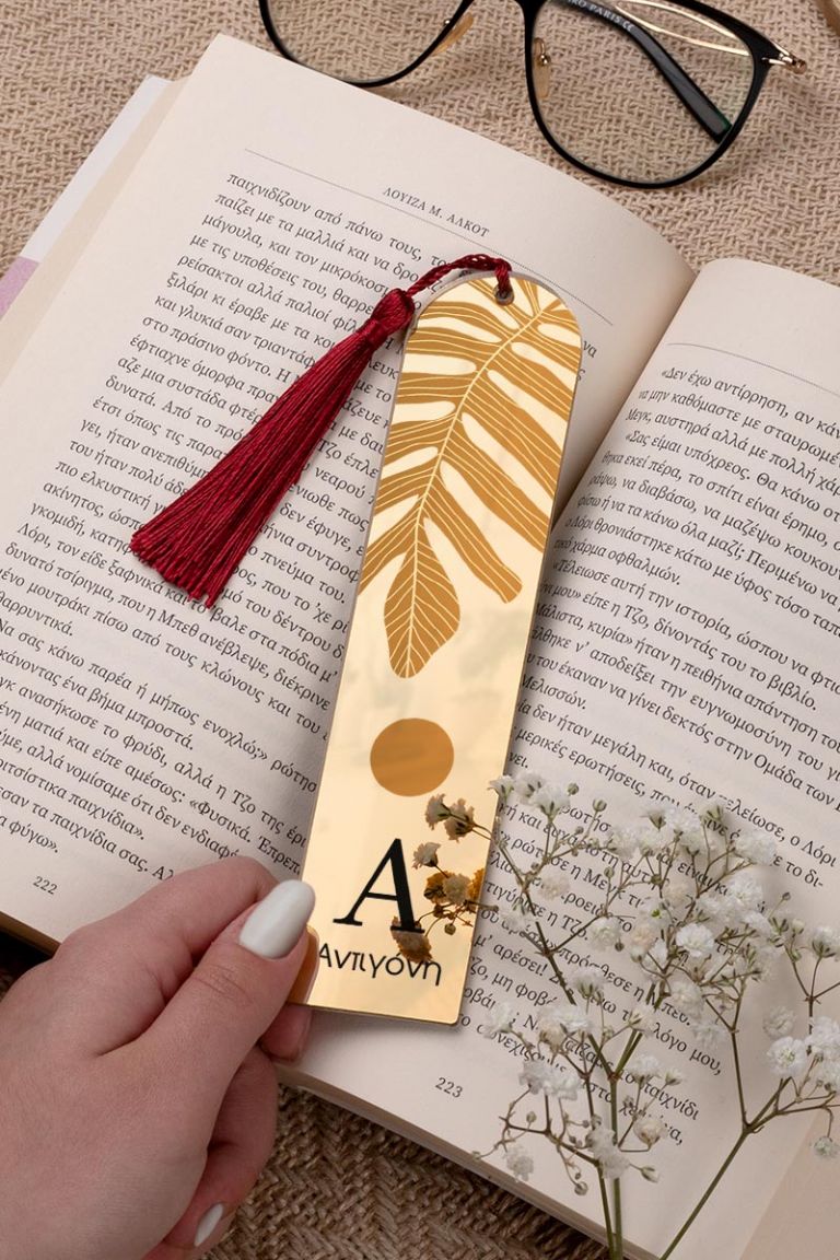 Σελιδοδείκτης Βιβλίου, Golden Mirror, Προσωποποιημένος, Calm Leaf