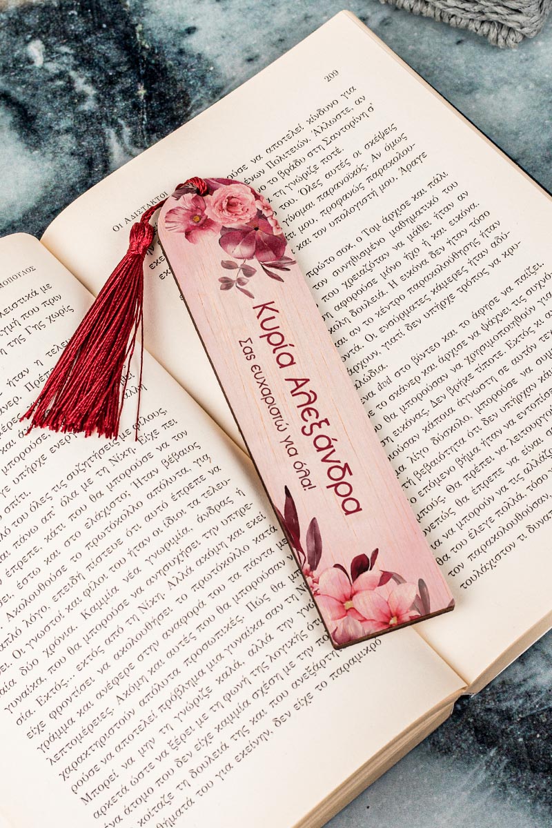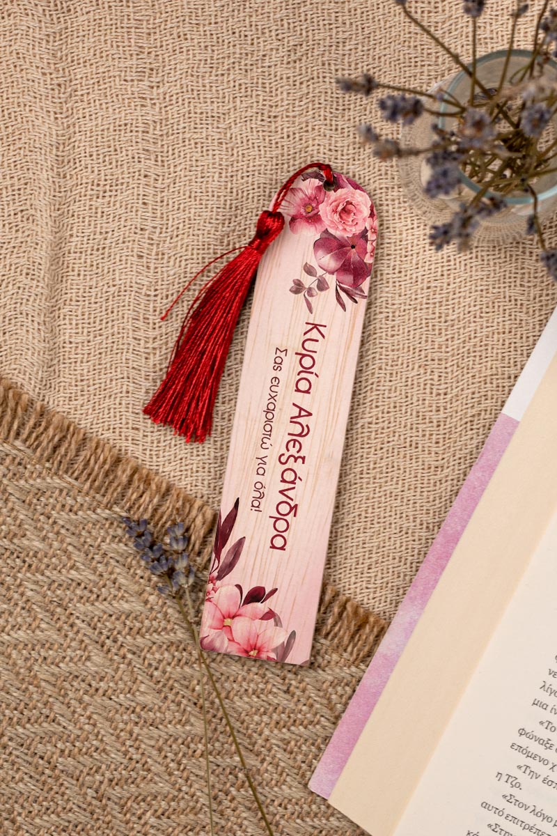 Σελιδοδείκτης Βιβλίου, Ξύλινος με Όνομα & Αφιέρωση, Abstract Flowers