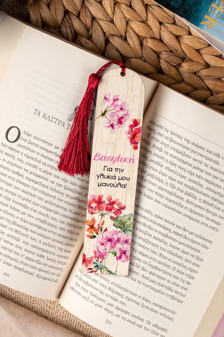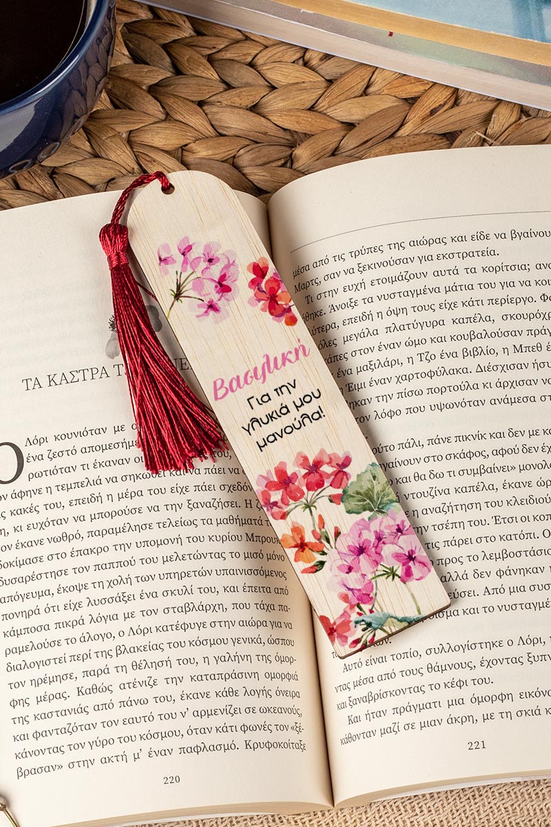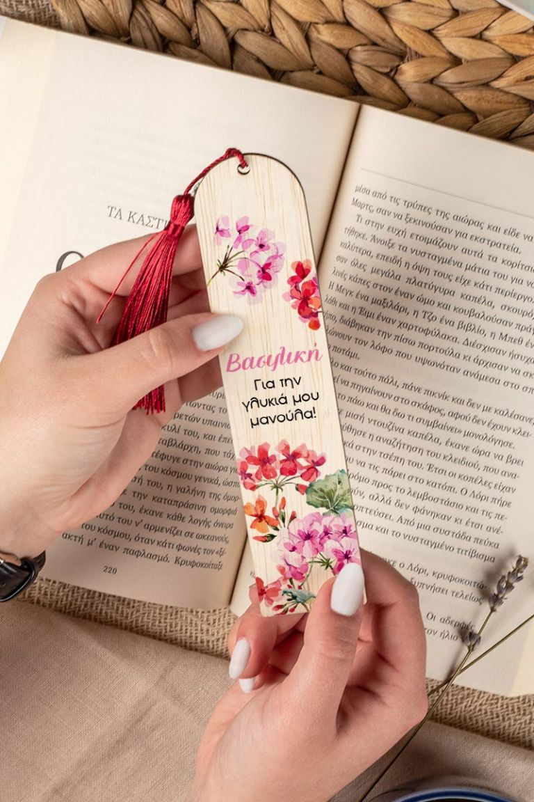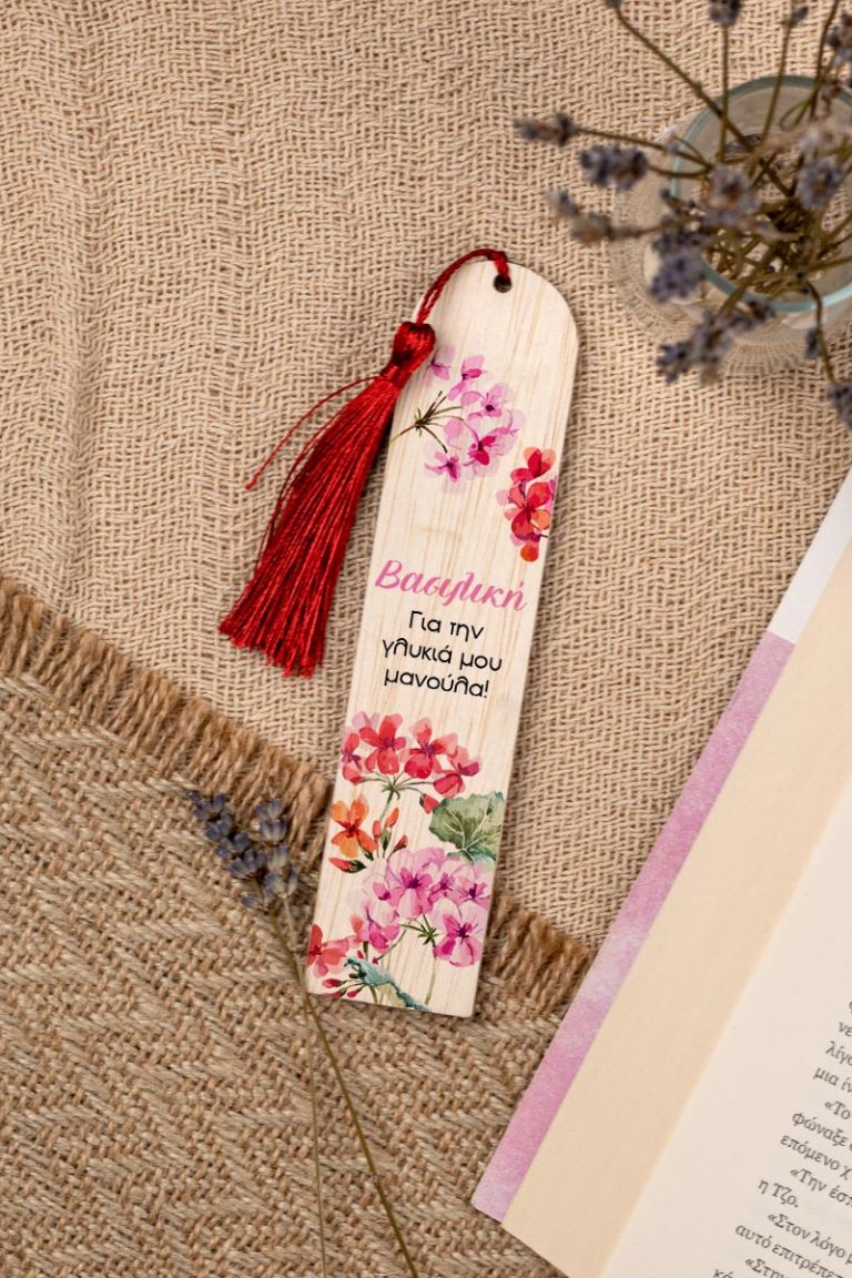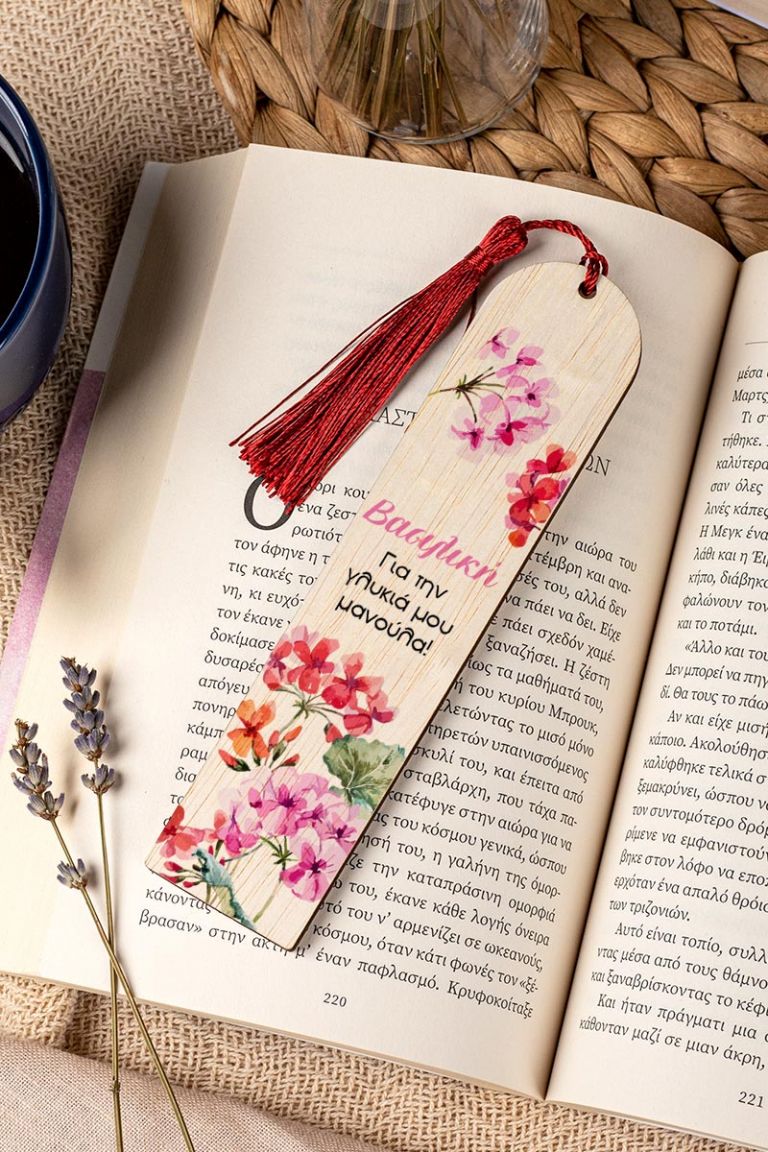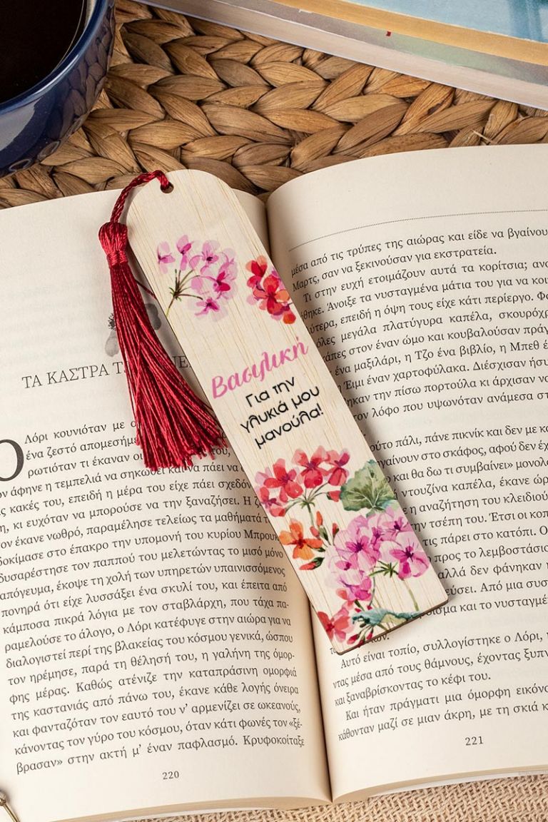 Σελιδοδείκτης Βιβλίου, Ξύλινος με Όνομα & Αφιέρωση, Color Floral