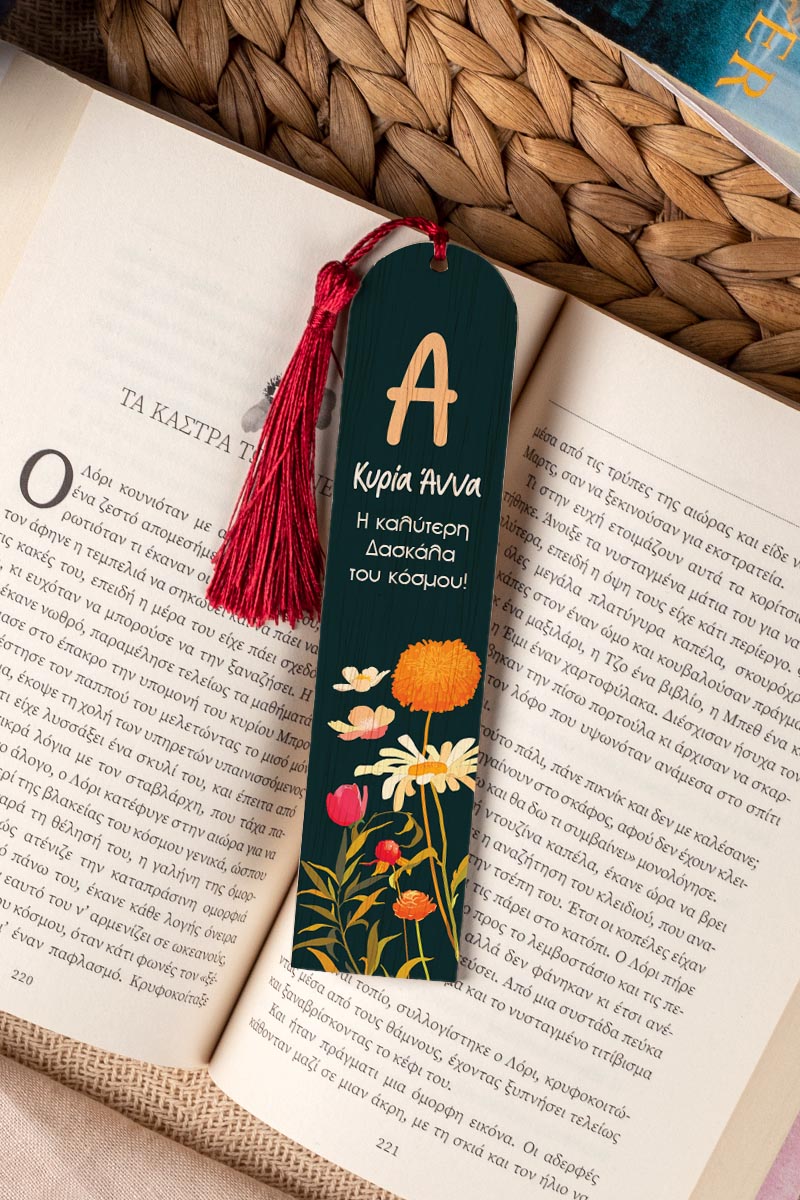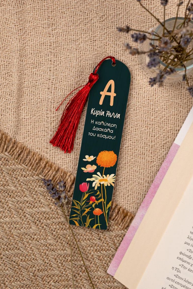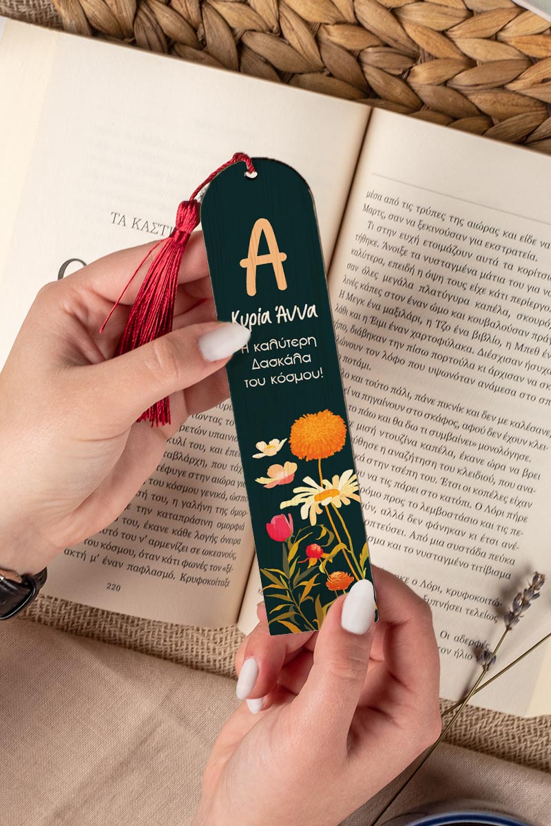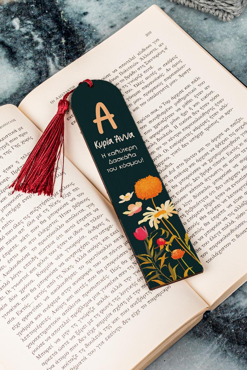Σελιδοδείκτης Βιβλίου, Ξύλινος με Όνομα & Αφιέρωση, Cute Flowers