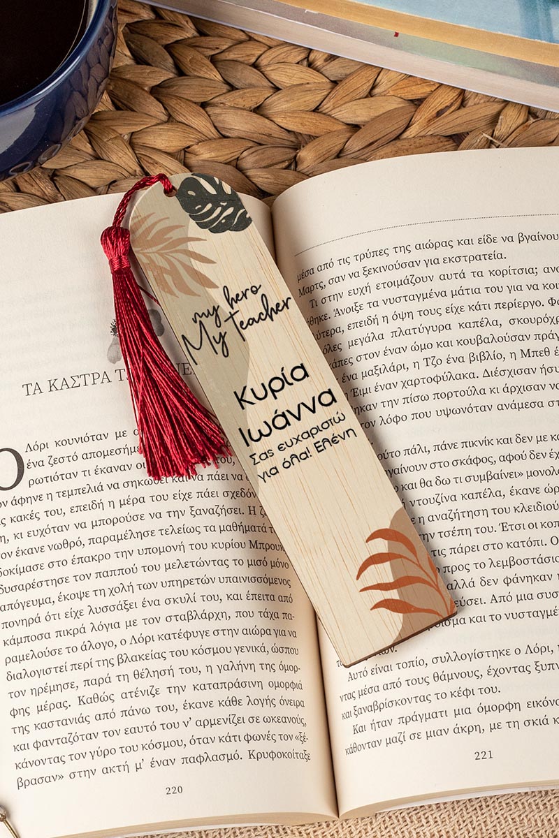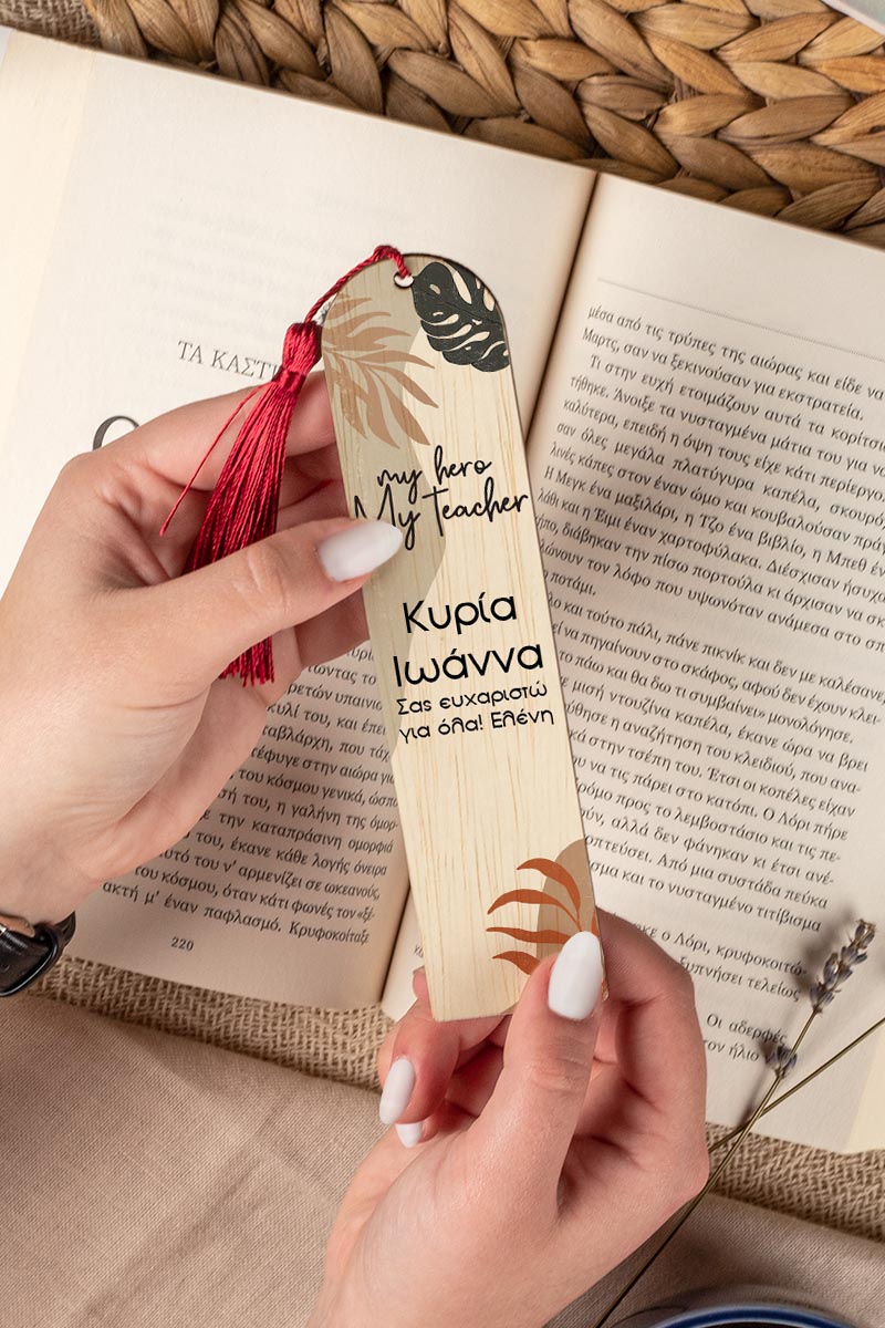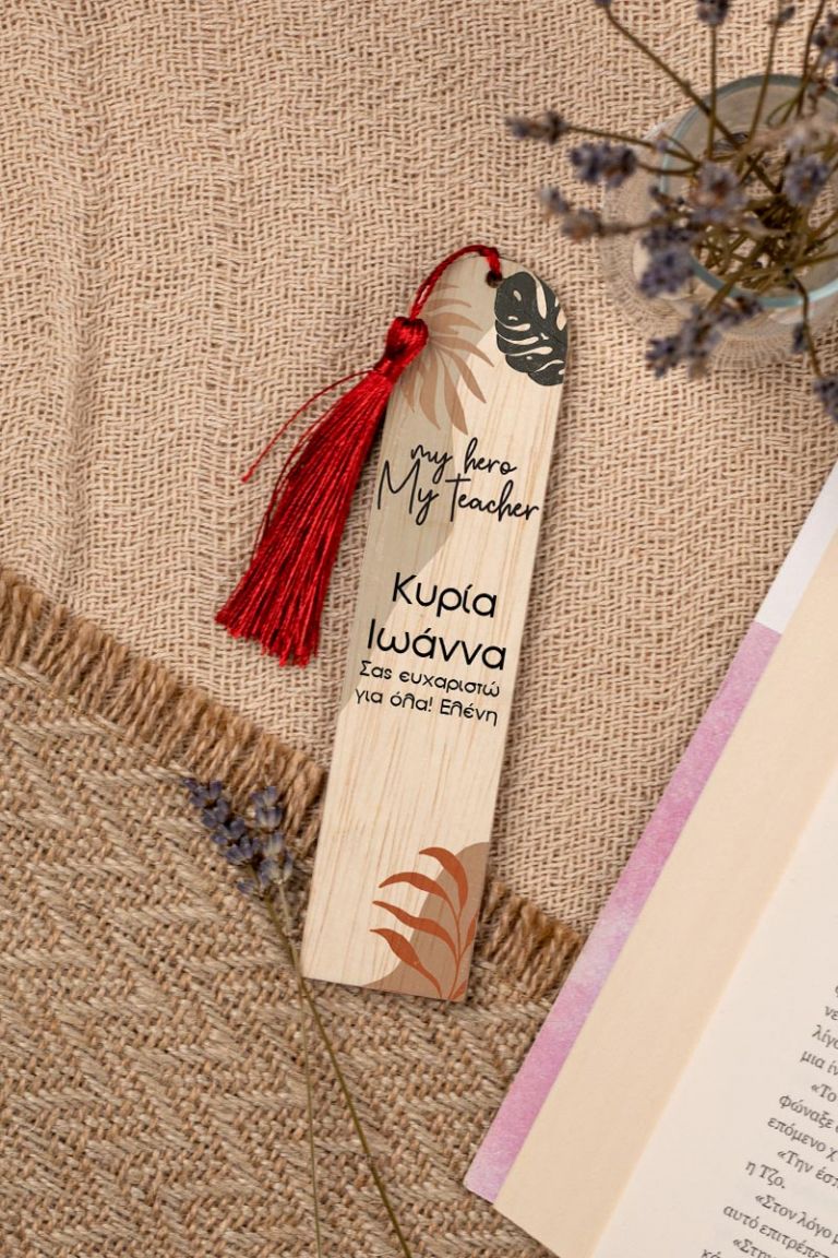 Σελιδοδείκτης Βιβλίου, Ξύλινος με Όνομα & Αφιέρωση, Hero Teacher
