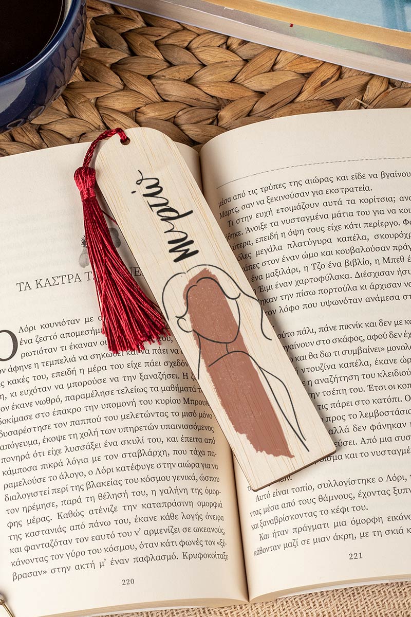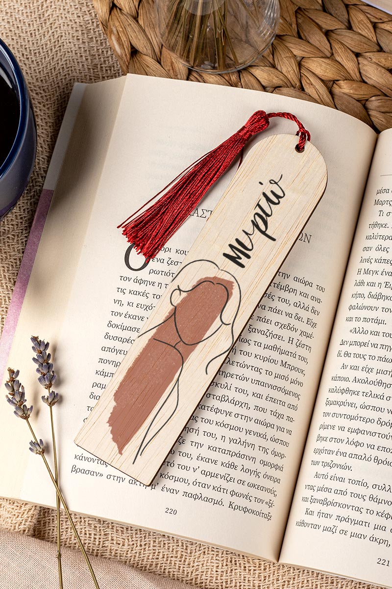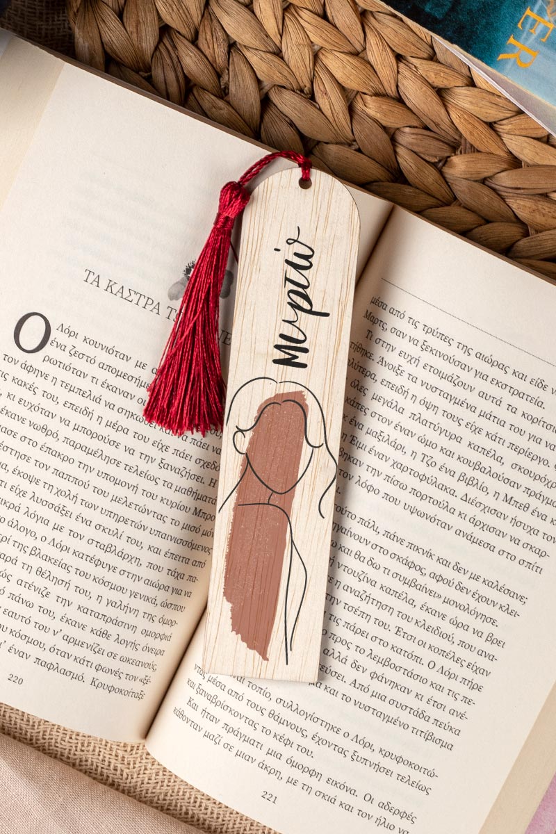 Σελιδοδείκτης Βιβλίου, Ξύλινος με Όνομα & Αφιέρωση, Line Paint
