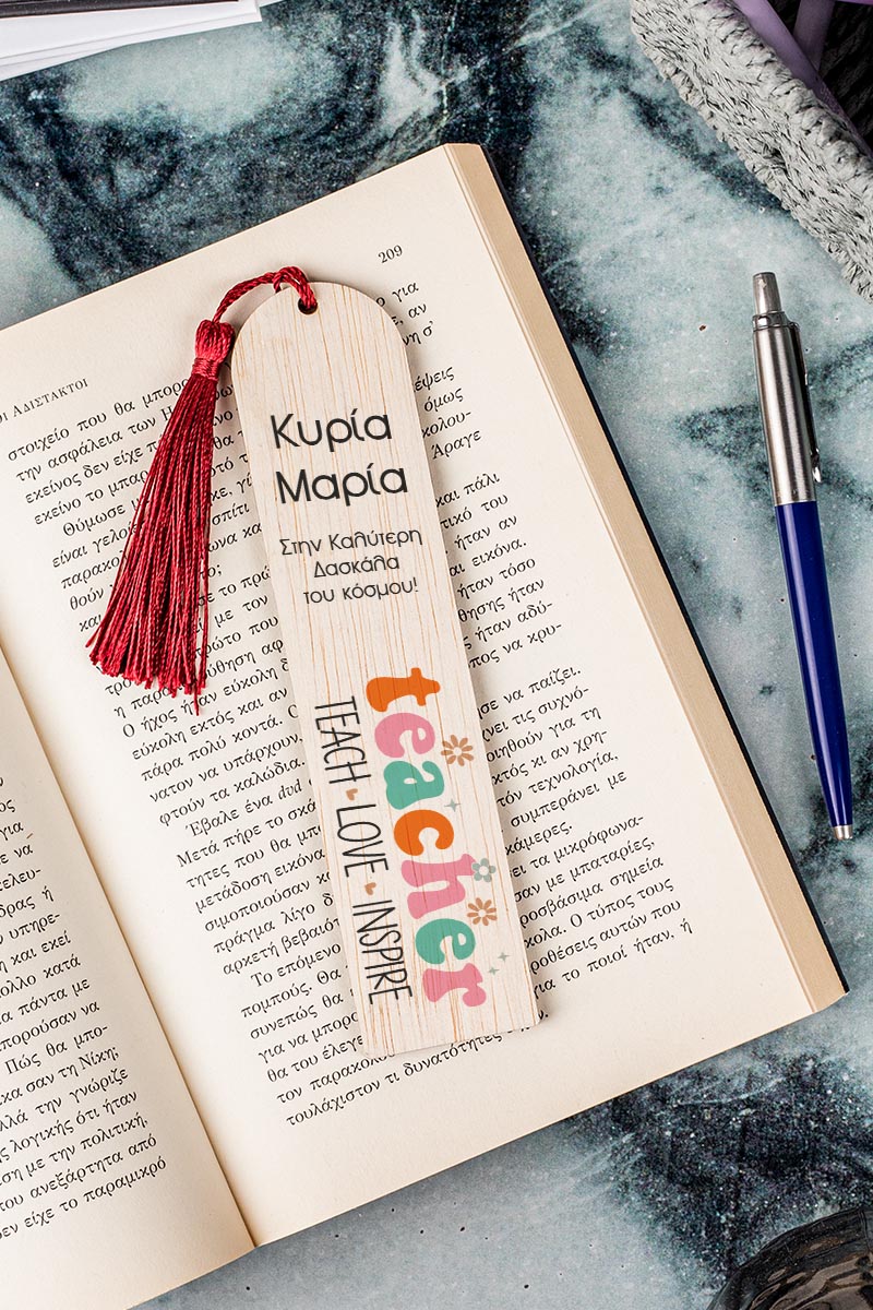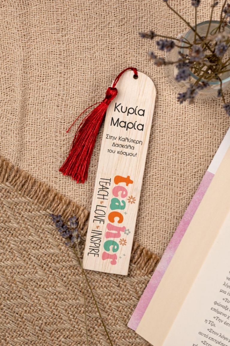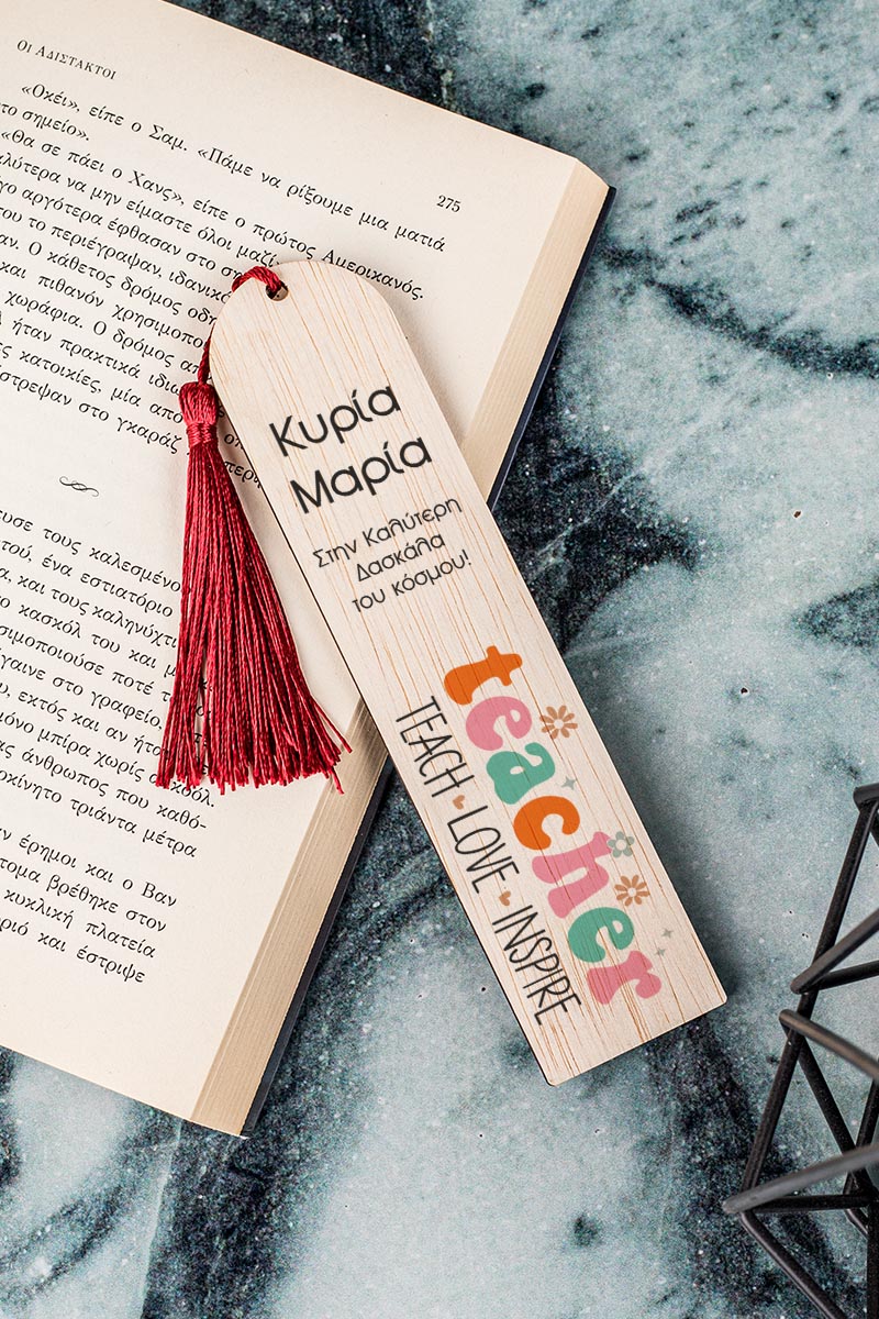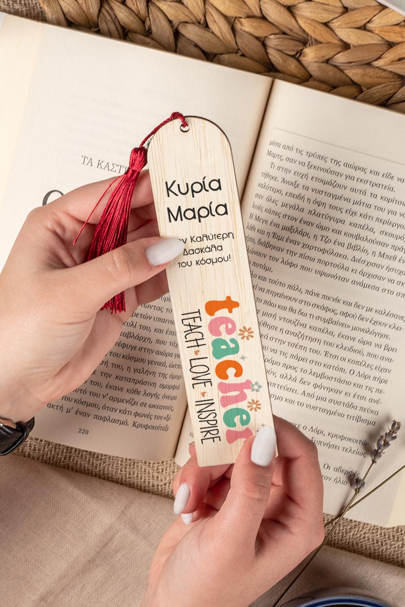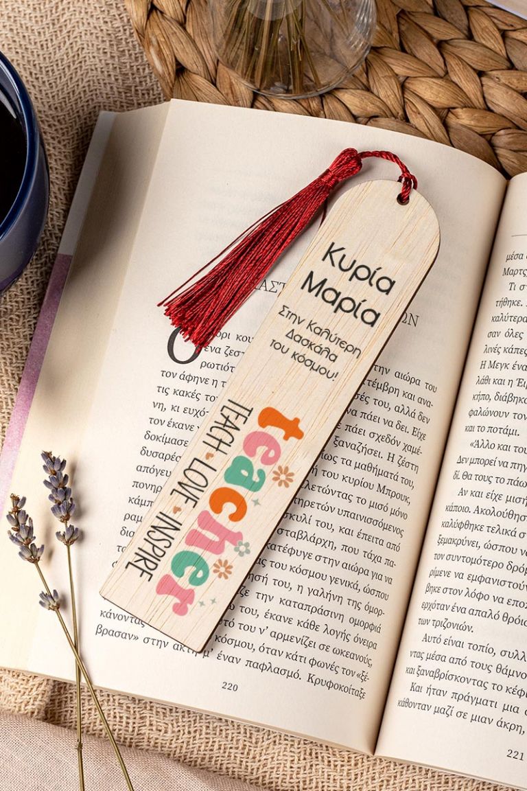 Σελιδοδείκτης Βιβλίου, Ξύλινος με Όνομα & Αφιέρωση, Teach Inspire