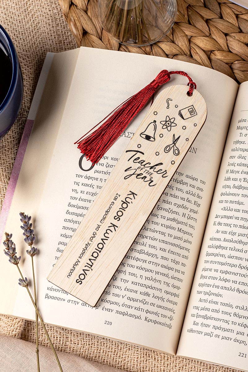 Σελιδοδείκτης Βιβλίου, Ξύλινος με Όνομα & Αφιέρωση, Wise Teacher