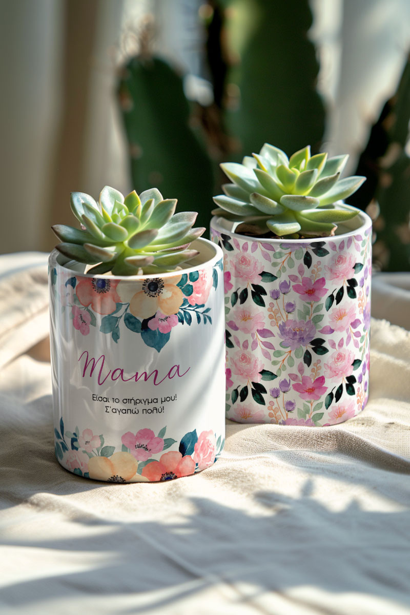 Κατασκευασμένα από υψηλής ποιότητας υλικά, τα γλαστράκια προσφέρουν ανθεκτικότητα και αξιοπιστία, εξασφαλίζοντας ότι θα απολαύσετε την ομορφιά τους για πολλά χρόνια. Είτε χρησιμοποιηθούν μόνα τους είτε σε συνδυασμό με άλλες διακοσμητικές προτάσεις, τα προσωποποιημένα γλαστράκια αναβαθμίζουν άμεσα τον χώρο σας με στιλ και προσωπικότητα.