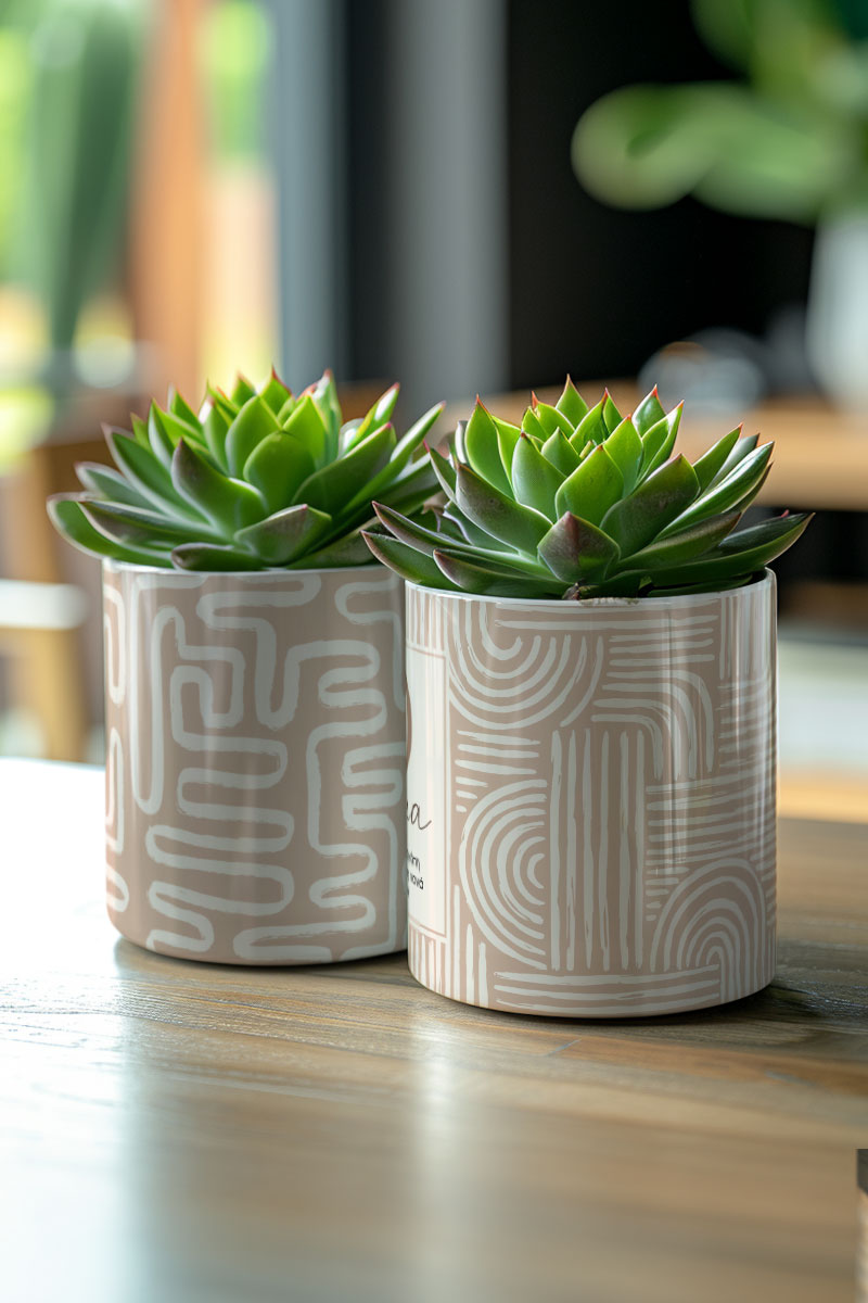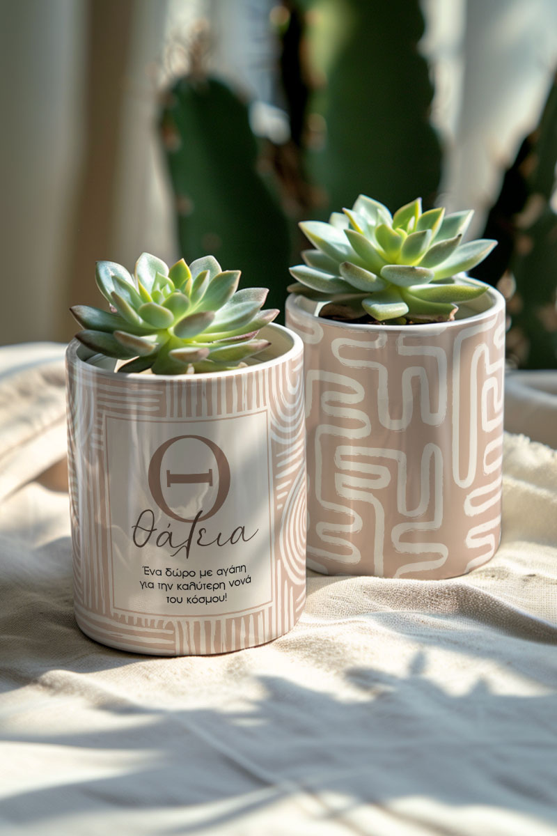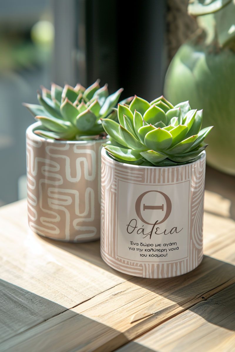 Κατασκευασμένα από υψηλής ποιότητας υλικά, τα γλαστράκια προσφέρουν ανθεκτικότητα και αξιοπιστία, εξασφαλίζοντας ότι θα απολαύσετε την ομορφιά τους για πολλά χρόνια. Είτε χρησιμοποιηθούν μόνα τους είτε σε συνδυασμό με άλλες διακοσμητικές προτάσεις, τα προσωποποιημένα γλαστράκια αναβαθμίζουν άμεσα τον χώρο σας με στιλ και προσωπικότητα.