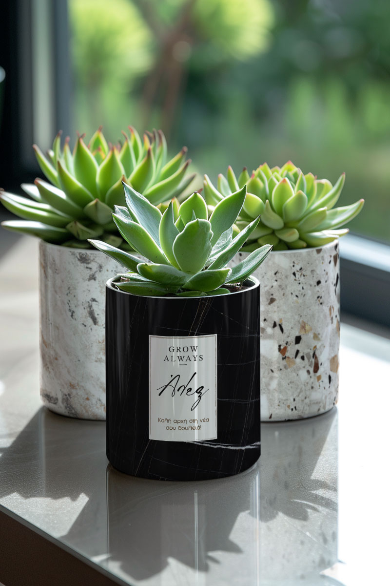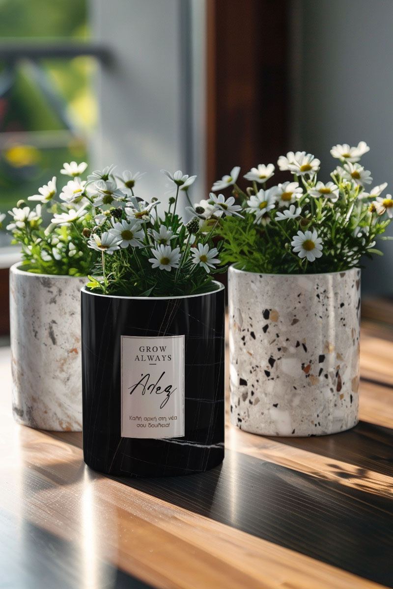 Κατασκευασμένα από υψηλής ποιότητας υλικά, τα γλαστράκια προσφέρουν ανθεκτικότητα και αξιοπιστία, εξασφαλίζοντας ότι θα απολαύσετε την ομορφιά τους για πολλά χρόνια. Είτε χρησιμοποιηθούν μόνα τους είτε σε συνδυασμό με άλλες διακοσμητικές προτάσεις, τα προσωποποιημένα γλαστράκια αναβαθμίζουν άμεσα τον χώρο σας με στιλ και προσωπικότητα.
