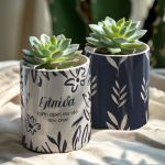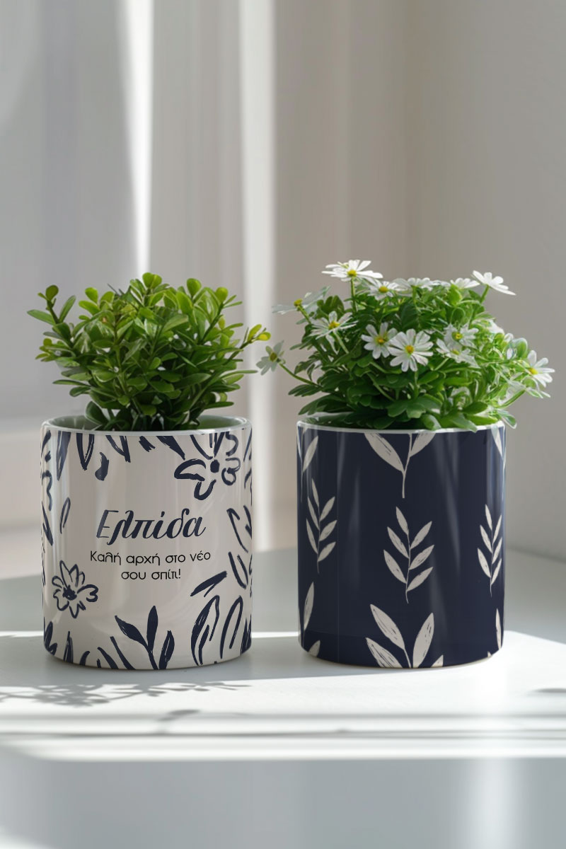 Κατασκευασμένα από υψηλής ποιότητας υλικά, τα γλαστράκια προσφέρουν ανθεκτικότητα και αξιοπιστία, εξασφαλίζοντας ότι θα απολαύσετε την ομορφιά τους για πολλά χρόνια. Είτε χρησιμοποιηθούν μόνα τους είτε σε συνδυασμό με άλλες διακοσμητικές προτάσεις, τα προσωποποιημένα γλαστράκια αναβαθμίζουν άμεσα τον χώρο σας με στιλ και προσωπικότητα.