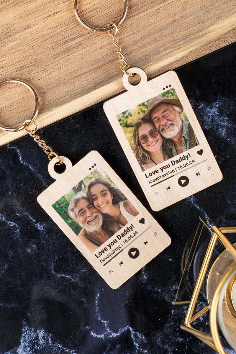 Προσωποποιημένο μπρελόκ, με φωτογραφία, ονόματα και αφιέρωση. Μοναδικό δώρο αγάπης για τη γιορτή του πατέρα!