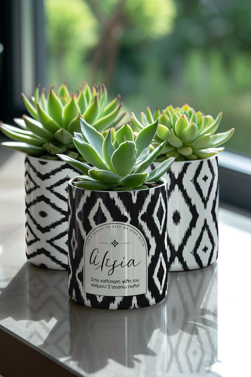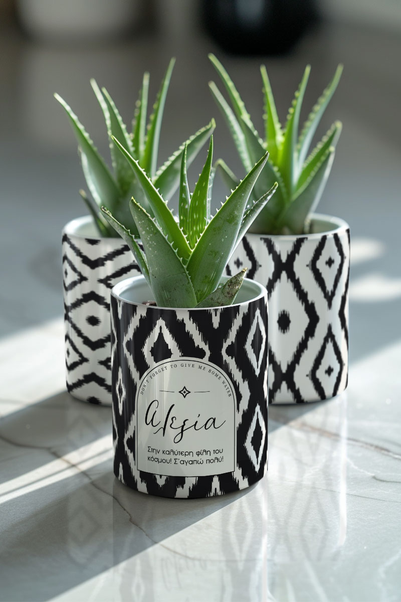 Κατασκευασμένα από υψηλής ποιότητας υλικά, τα γλαστράκια προσφέρουν ανθεκτικότητα και αξιοπιστία, εξασφαλίζοντας ότι θα απολαύσετε την ομορφιά τους για πολλά χρόνια. Είτε χρησιμοποιηθούν μόνα τους είτε σε συνδυασμό με άλλες διακοσμητικές προτάσεις, τα προσωποποιημένα γλαστράκια αναβαθμίζουν άμεσα τον χώρο σας με στιλ και προσωπικότητα.