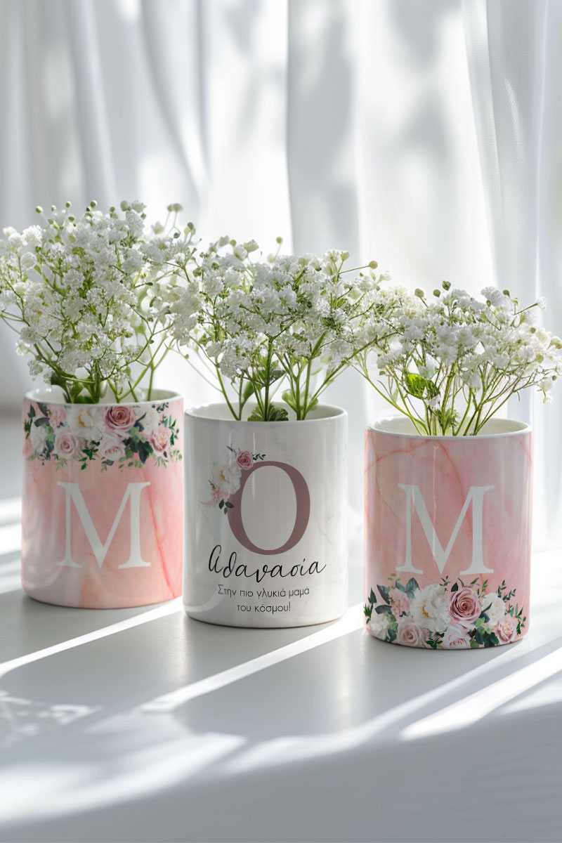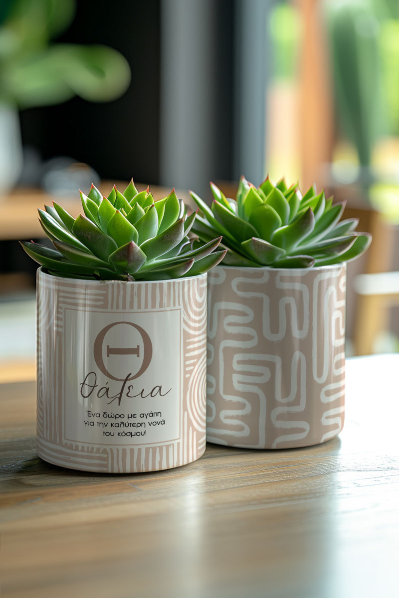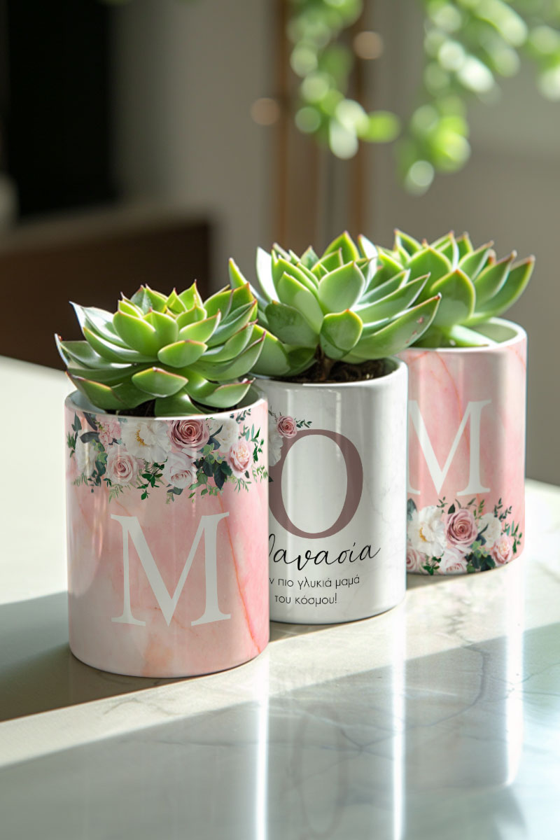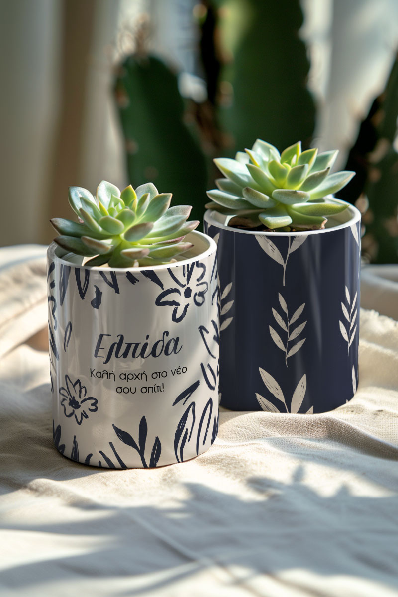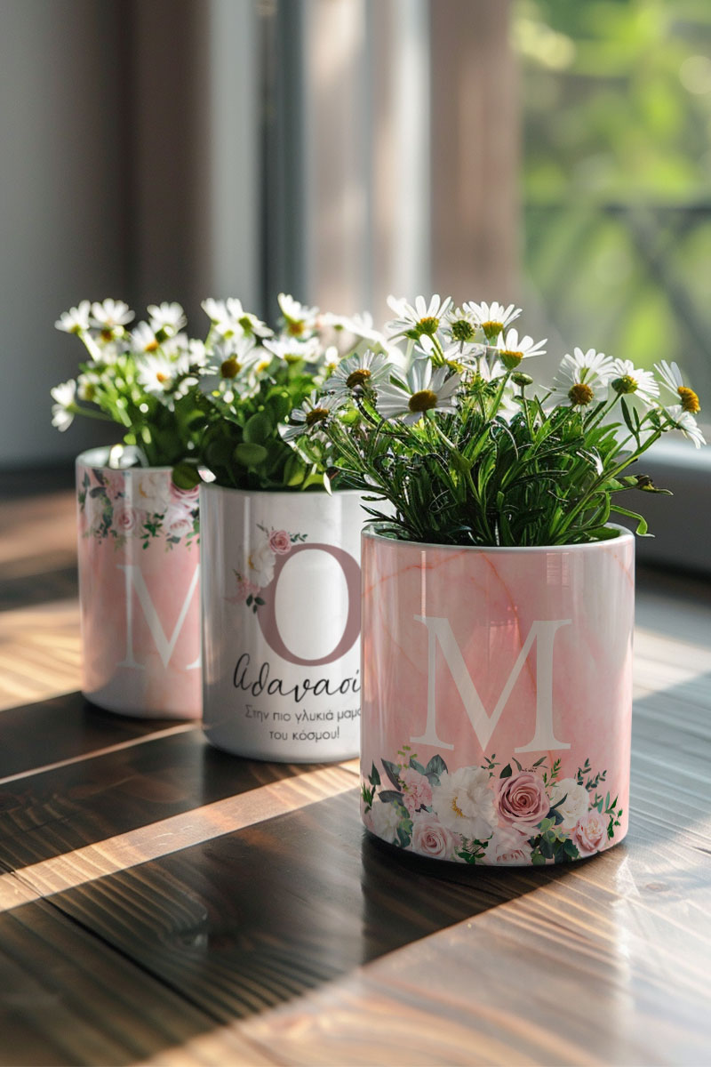 Κατασκευασμένα από υψηλής ποιότητας υλικά, τα γλαστράκια προσφέρουν ανθεκτικότητα και αξιοπιστία, εξασφαλίζοντας ότι θα απολαύσετε την ομορφιά τους για πολλά χρόνια. Είτε χρησιμοποιηθούν μόνα τους είτε σε συνδυασμό με άλλες διακοσμητικές προτάσεις, τα προσωποποιημένα γλαστράκια αναβαθμίζουν άμεσα τον χώρο σας με στιλ και προσωπικότητα.