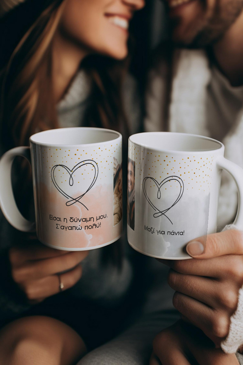 Η προσθήκη φωτογραφίας του ζευγαριού, ονομάτων ή αφιέρωσης προσδίδει στις κούπες μια προσωπική πινελιά. Κάθε φορά που θα απολαμβάνετε τον πρωινό σας καφέ ή το απογευματινό τσάι, θα ανακαλύπτετε ένα κομμάτι της αγάπης σας που ζει σε κάθε γωνιά της κούπας.