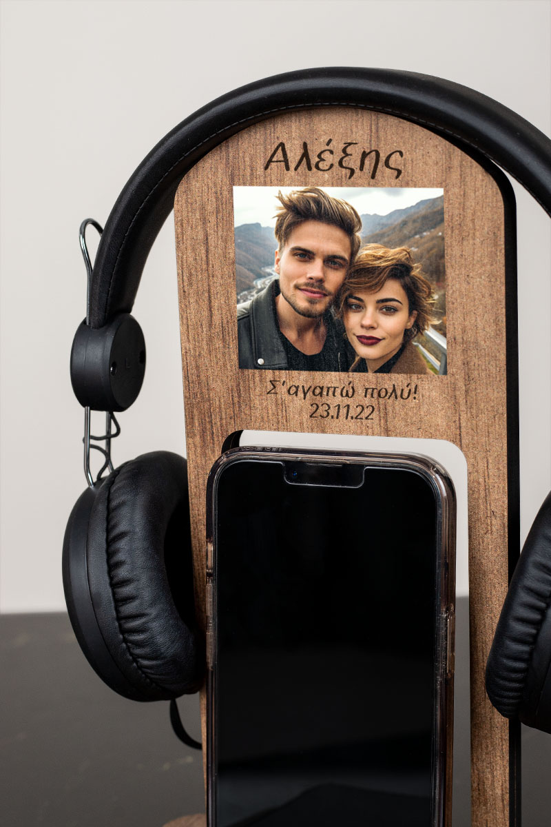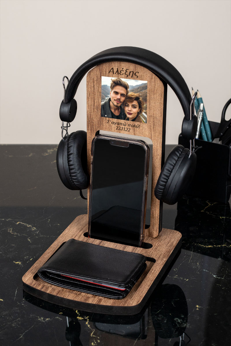 Ξύλινο επιτραπέζιο Stand οργάνωσης για ακουστικά, κινητό τηλέφωνο, πορτοφόλι κτλ