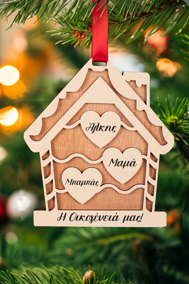 Χριστουγεννιάτικο Ξύλινο Στολίδι Δέντρου, Σπιτι με 3 Ονόματα