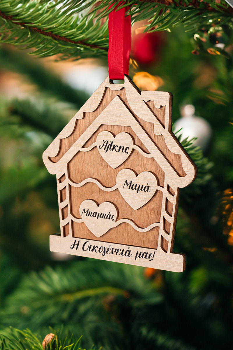 Χριστουγεννιάτικο Ξύλινο Στολίδι Δέντρου, Σπιτι με 4 Ονόματα
