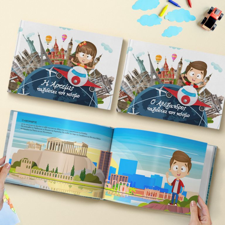 Η ιστορία “Γνωρίζω τον Κόσμο” διηγείται με εκπαιδευτικό τρόπο τα ταξίδια του μικρού σας ήρωα, μαθαίνει στα παιδιά τις χώρες & τις διαφορετικές κουλτούρες του κόσμου.