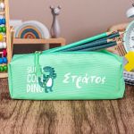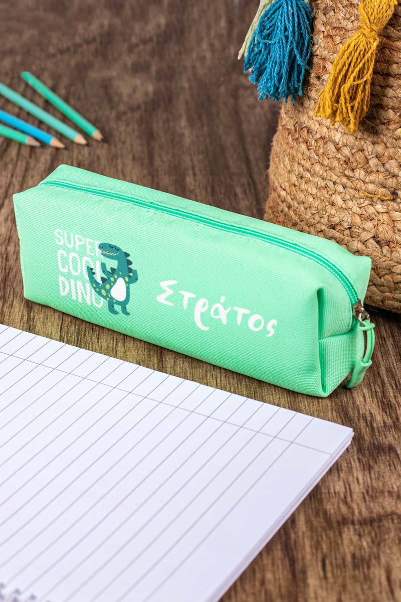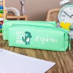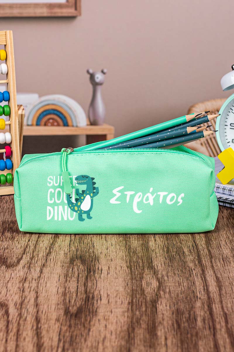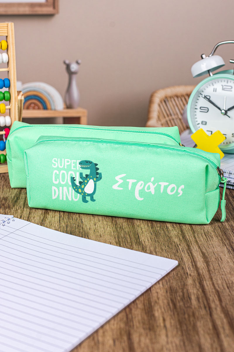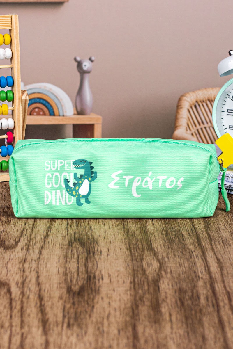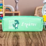 Σχολική Κασετίνα με Όνομα, σε Πετρόλ Χρώμα & Σχέδιο Cool Dino