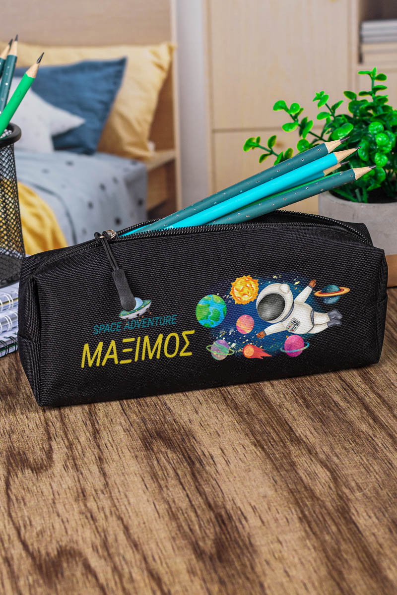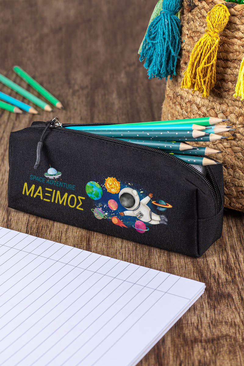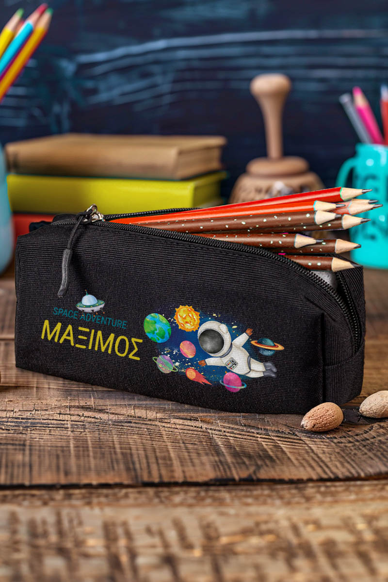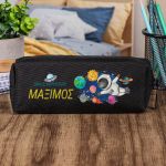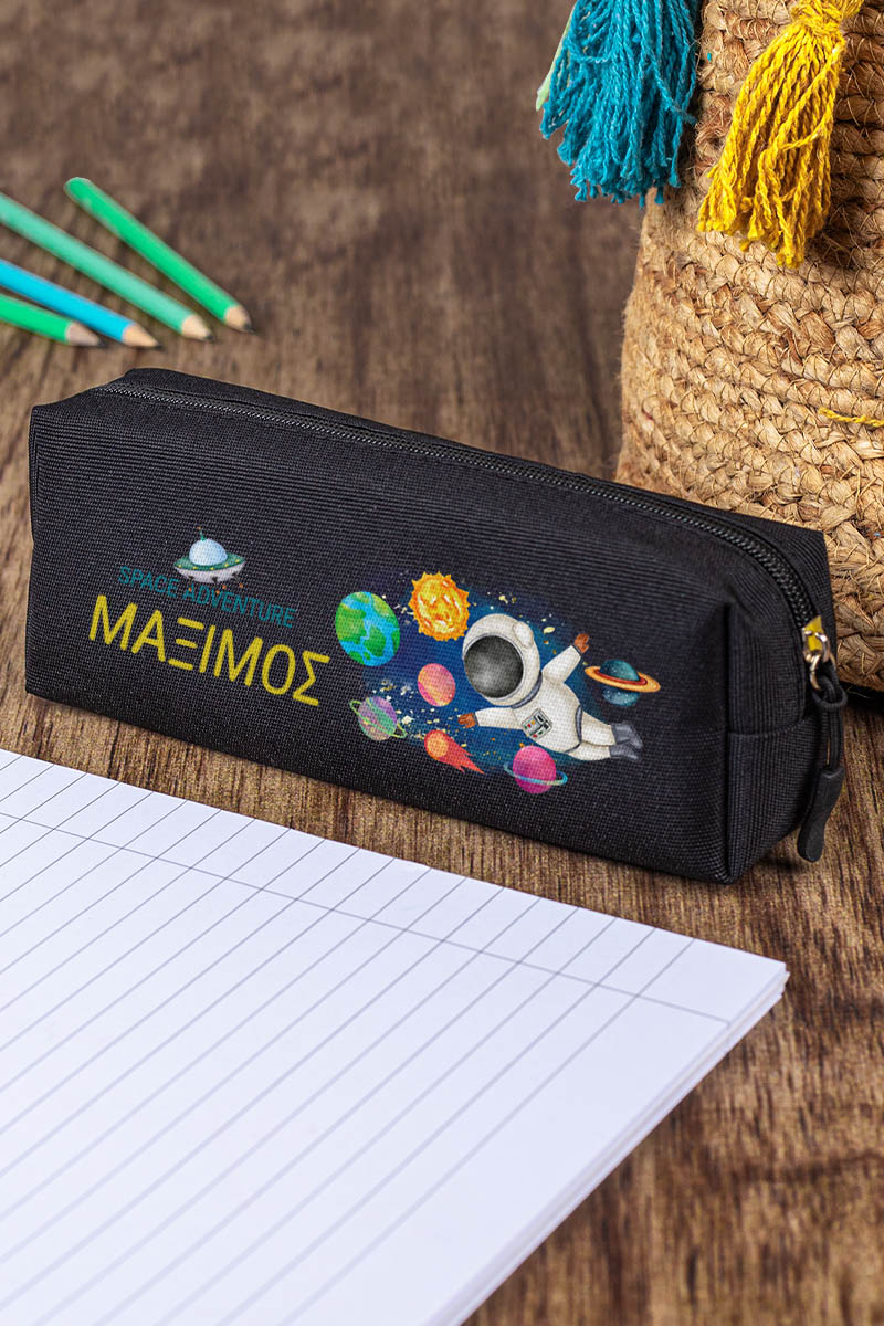 Σχολική Κασετίνα με Όνομα, σε Μαύρο Χρώμα & Σχέδιο Astronaut