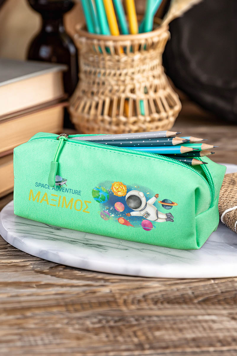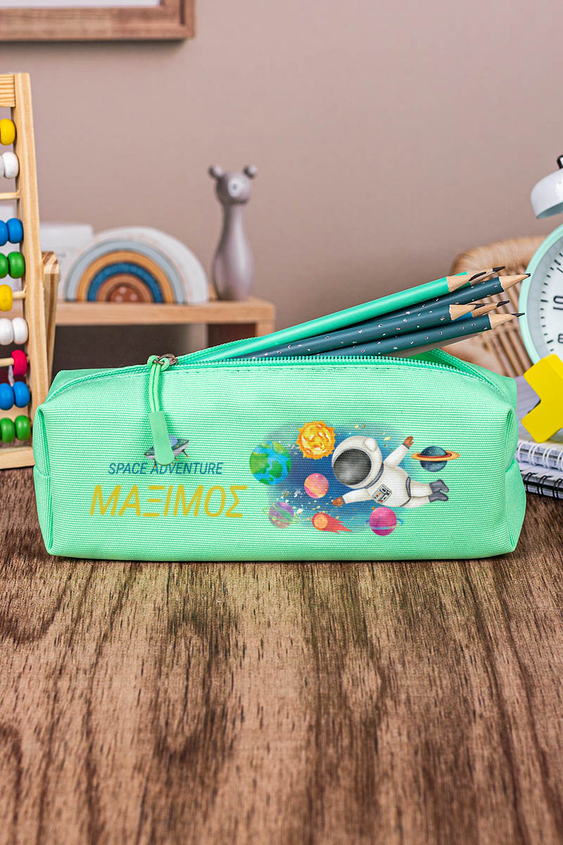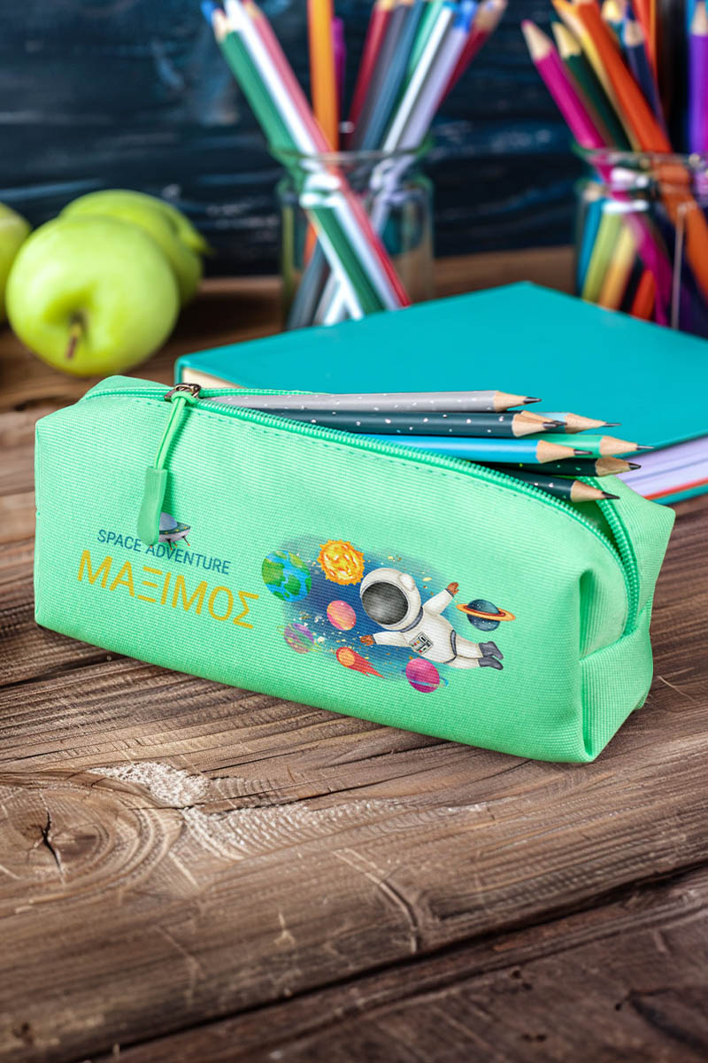 Σχολική Κασετίνα με Όνομα, σε Πετρόλ Χρώμα & Σχέδιο Astronaut
