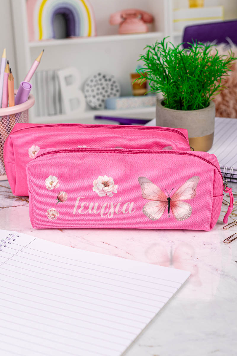 Σχολική Κασετίνα με Όνομα, σε Φούξια Χρώμα & Σχέδιο Daisy