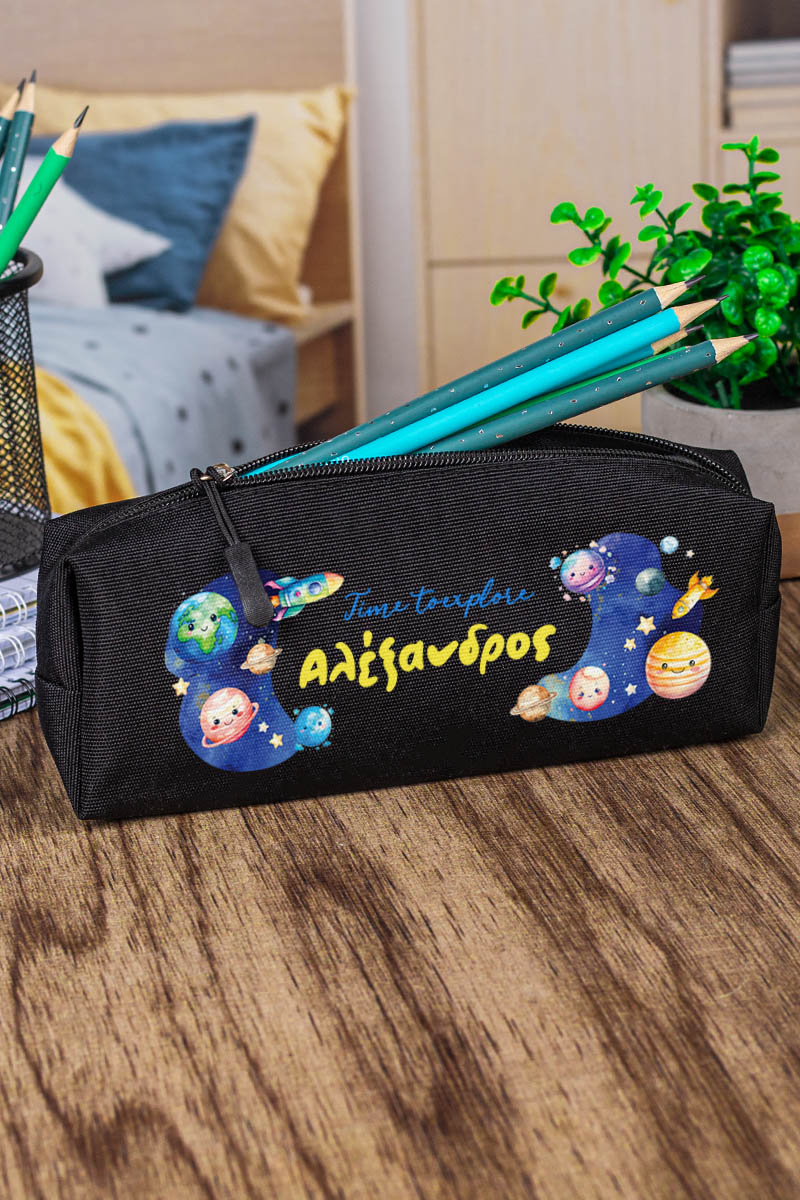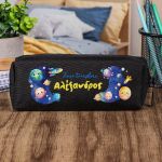 Σχολική Κασετίνα με Όνομα, σε Μαύρο Χρώμα & Σχέδιο Διάστημα