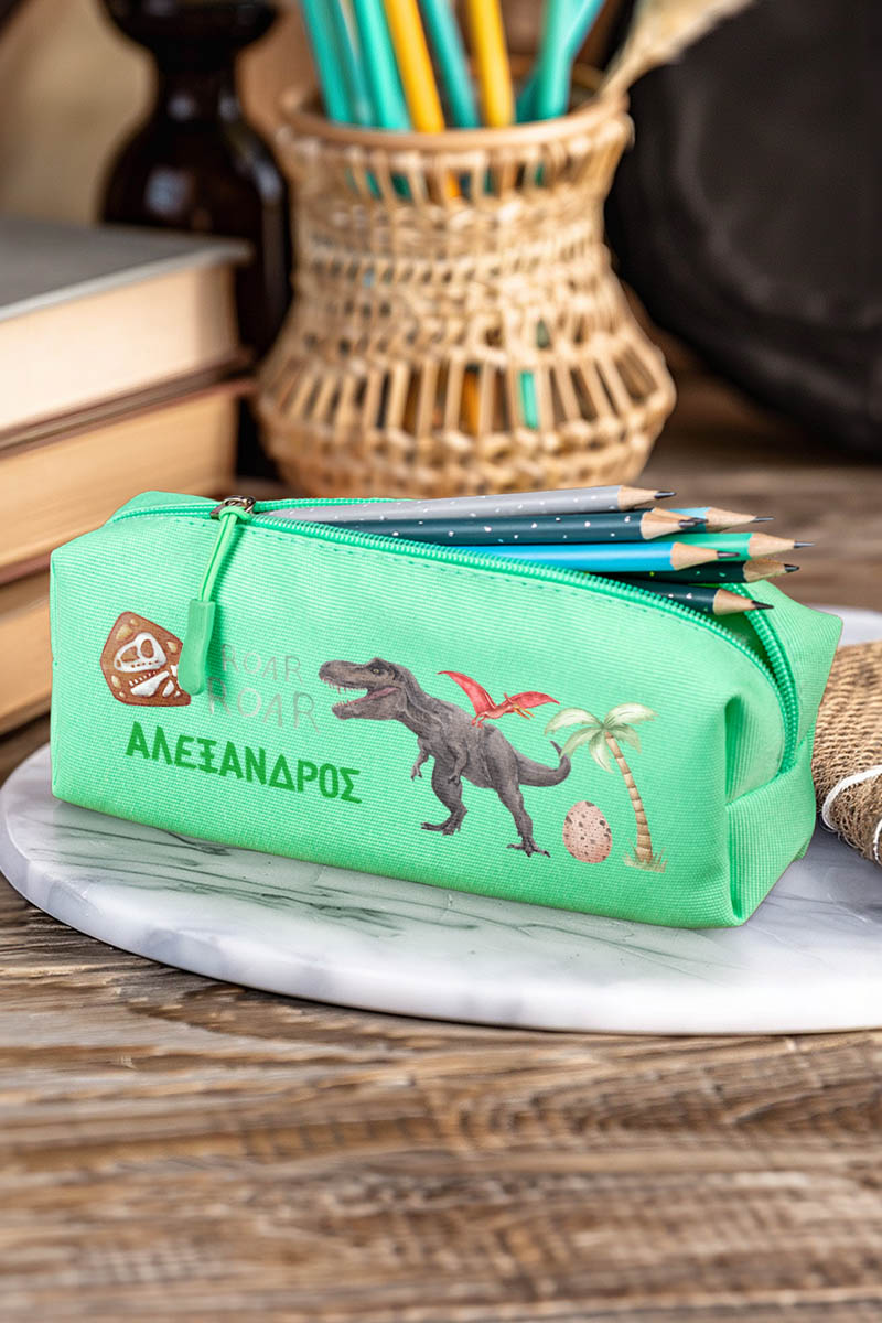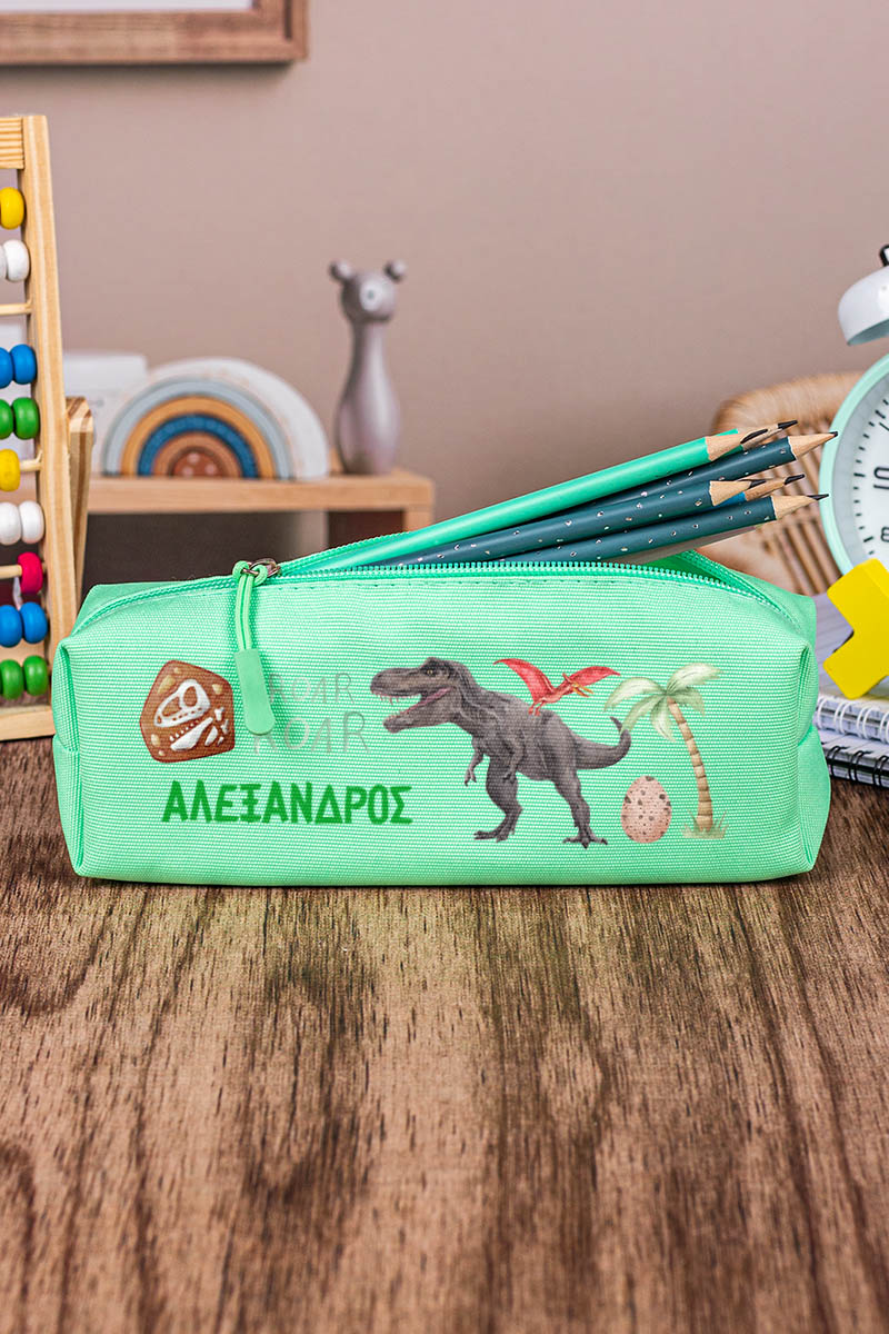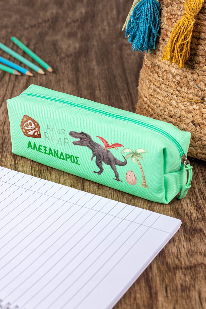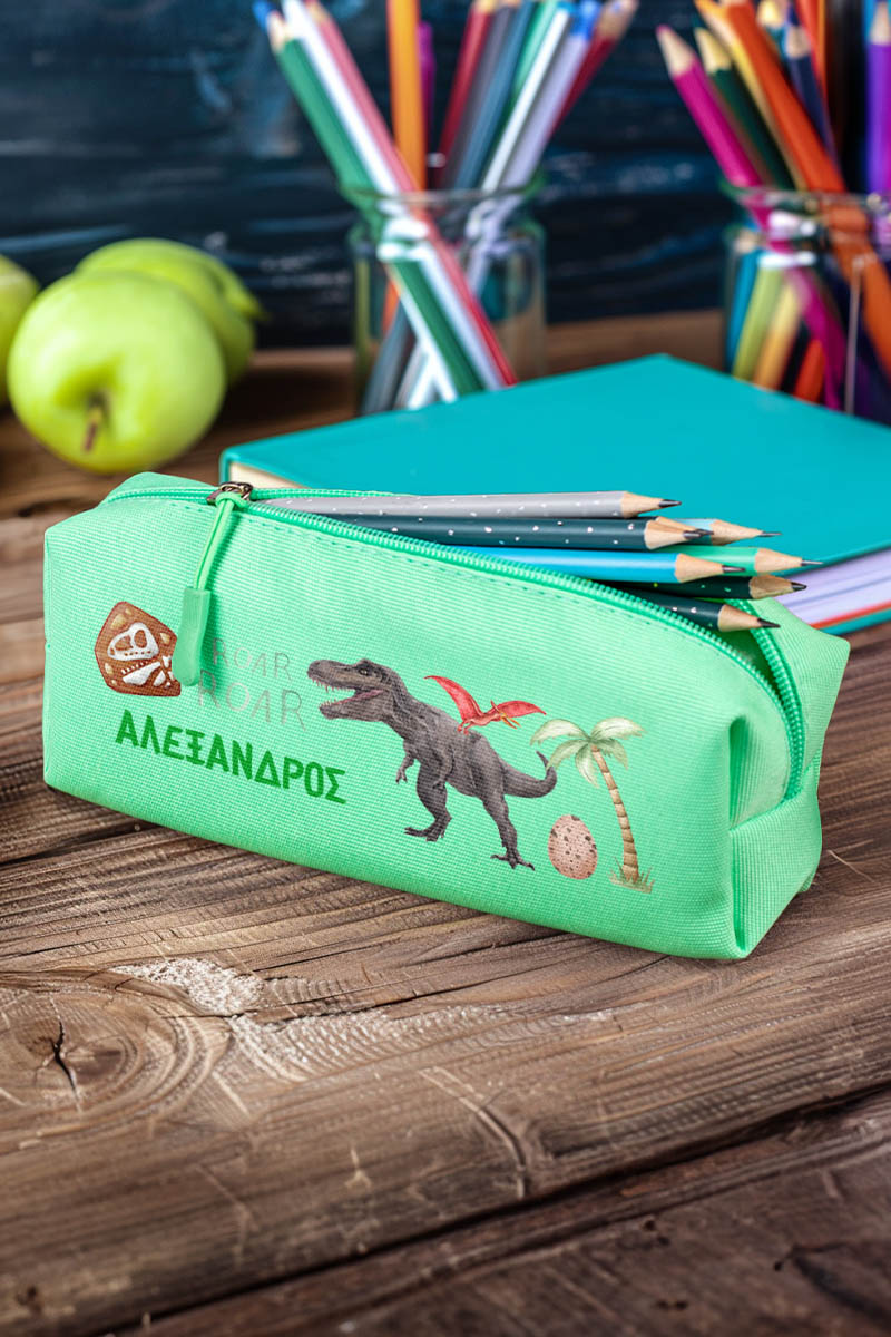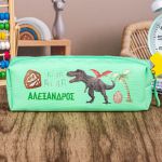 Σχολική Κασετίνα με Όνομα, σε Πετρόλ Χρώμα & Σχέδιο Dino